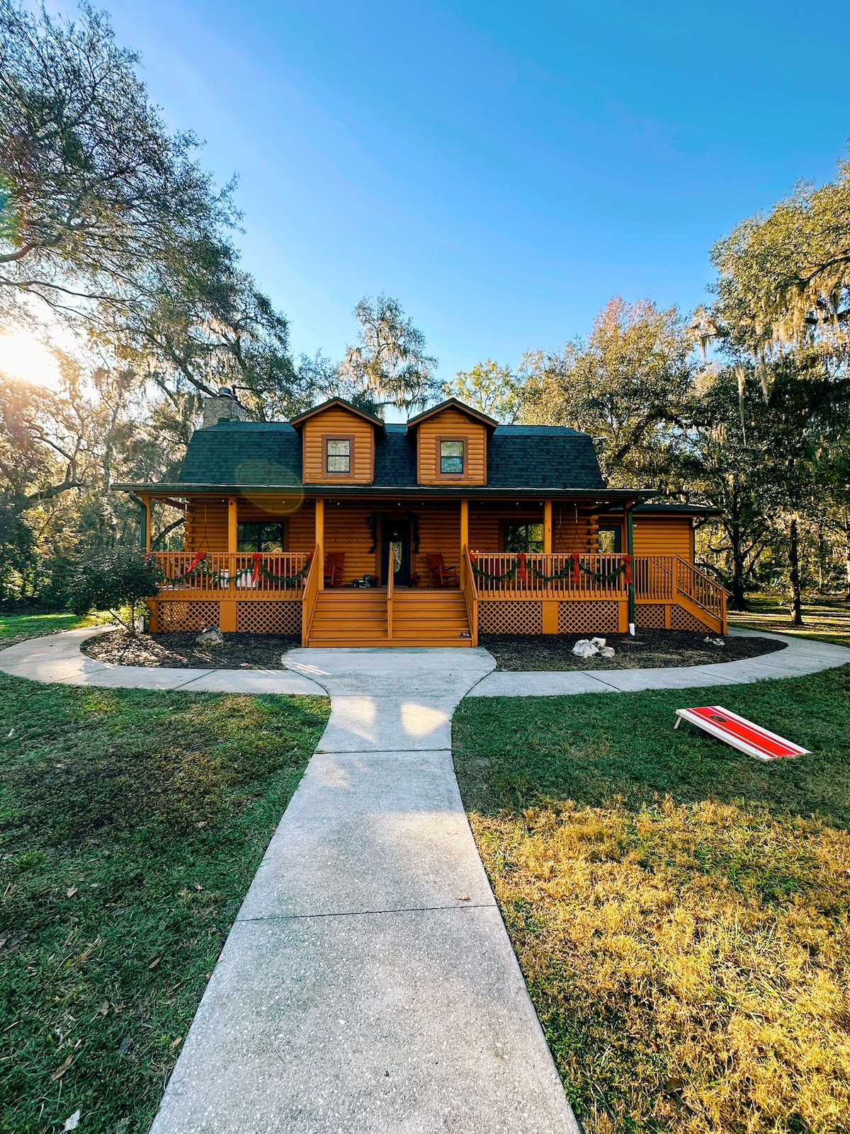 Située sur le canal principal de la rivière Withlacoochee en face de la forêt d'État, cette maison offre détente et loisirs. La maison est équipée de canoës et de kayaks à lancer depuis l'arrière-cour, et de vélos pour profiter des plus de 40 miles de sentiers pavés et de VTT. Venez à la maison pour vous détendre près de la cheminée et profiter de la vue sur la rivière, traîner et pêcher depuis la rive de la rivière, vous allonger dans quelques hamacs ou allumer le barbecue. Cette maison est une excellente escapade de vacances pour les couples, les familles et les amis !