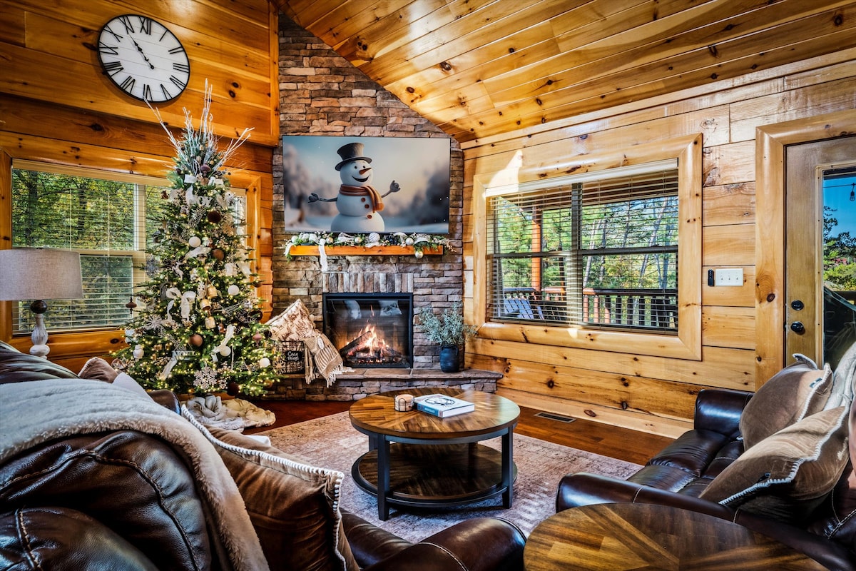 Une retraite privée de premier ordre de 6 acres dans les montagnes Great Smoky avec beaucoup d'espace pour vos vacances en famille ou en groupe. À 6 miles de Pigeon Forge - 6 acres privés - Vue sur la montagne - 135 pieds de terrasse - Jacuzzi privé - Table de billard - 2 arcades - Jeu de fléchettes - Cornhole - Gril au charbon de bois - Cuisine entièrement approvisionnée - Wi-Fi - Téléviseurs intelligents partout - Systèmes de sonorisation - Articles pour bébé/enfant - Linge de maison et consommables fournis