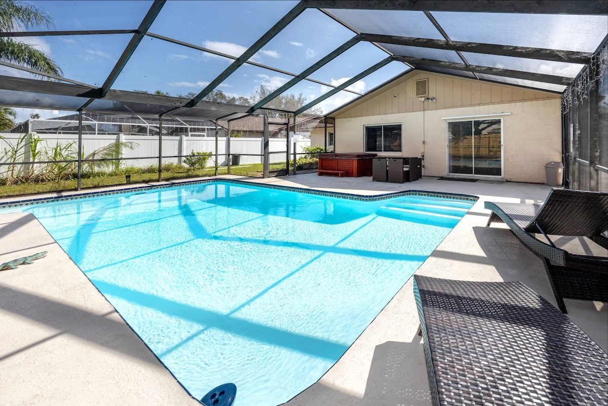 Pas de zone d'évacuation obligatoire. Cet hébergement élégant est parfait pour les voyages en groupe, les 4 chambres et les espaces communs très spacieux, chaque chambre dispose d'un ventilateur de plafond et d'une télévision connectée. L'emplacement est parfait, à 5 min des États-Unis 19, à 20 min de l'aéroport de Tampa, à 20 min du centre-ville, à 20 min des plages, quartier sûr et calme. La cour arrière est entièrement clôturée et privée, terrasse gigantesque sur 3 côtés de la maison avec 3 entrées, foyer et gril à gaz. Les animaux de compagnie sont les bienvenus ici !