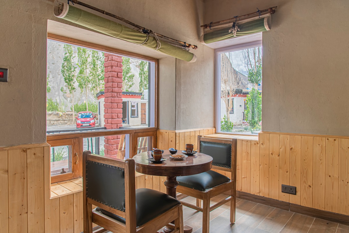 Aucun détail n'est négligé dans ce logement charmant et haut de gamme. Situé près de Kaza et en route vers le célèbre monastère de Key. Cet endroit offre 12 mois de services et de l'eau courante, ce qui est un luxe en hiver à Spiti lorsque la température descend à -25 et que la vie devient difficile.