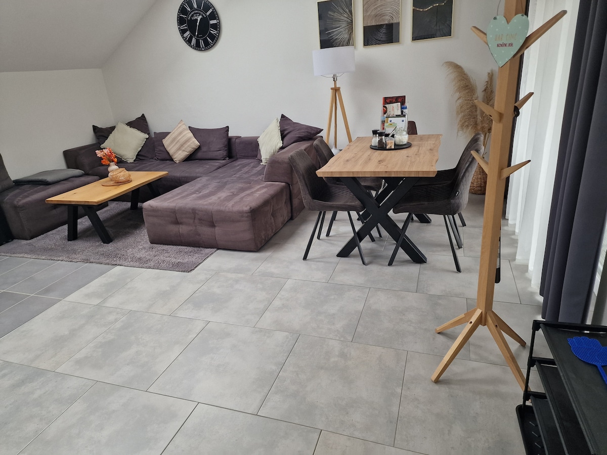 Chers invités potentiels : Que ce soit de passage, pour une petite pause ou pour plus longtemps - notre appartement spacieux et confortable Elli est rapidement accessible et un bon endroit pour se détendre le soir - par exemple sur le balcon avec vue panoramique. Dans le village, il y a une belle piscine extérieure et une bonne gastronomie - beaucoup de forêt autour. Notre café a le petit déjeuner en semaine à partir de 6 heures ou le week-end à partir de 7 heures.