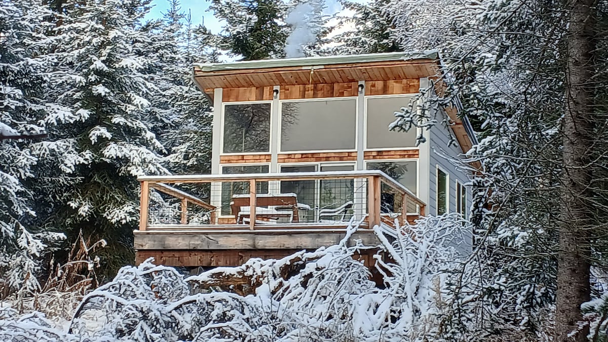 Magnifique cabane moderne avec vue spectaculaire sur le lac et les montagnes. Les voyageurs adoreront les murs de bouleau uniques, le joli loft et les autres touches de design. Idéal pour les voyageurs en solo à la recherche d'une escapade, d'escapades romantiques et de petites vacances en famille. Il est courant d'entendre les bruits des hydravions qui décollent du lac Beluga, de voir des oiseaux de rivage qui voltigent et de regarder des élans qui se promènent dans le marais. Un chalet très confortable et bien pensé pour le voyageur attentionné.