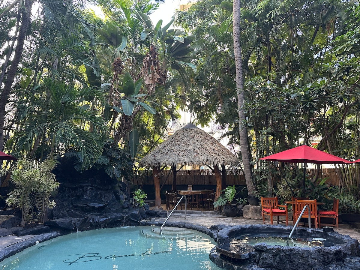 🌺 Welcome to the top floor studio in Kuhio Village Tower 2—just steps from the best of Waikiki! Enjoy your own private condo with a King-size bed, private lanai, full bath, and free beach gear. Perfect for couples, solo travelers, or those seeking a convenient island home base. 🌴 Surrounded by amazing restaurants, local food trucks, and just a short stroll to Waikiki Beach and the International Marketplace—you can’t beat this location for the price!