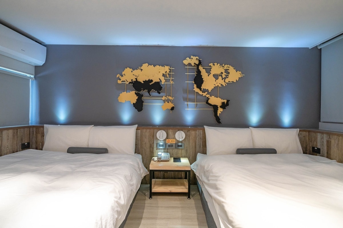 Séjournez dans cette chambre double confortable et minimaliste et explorez facilement les principales attractions de Hualien ! La chambre est lumineuse et bien équipée avec une connexion Wi-Fi privée, une télévision intelligente de 42" et un grand bureau. A proximité : laverie automatique, 7-Eleven et FamilyMart. Le marché de nuit de Dongdamen est accessible à pied et vous pourrez profiter de la vue sur l'océan Pacifique depuis le toit. Salle de bains privée, micro-ondes sur B1, vélos gratuits. L'hôtel propose un grand parking gratuit.
