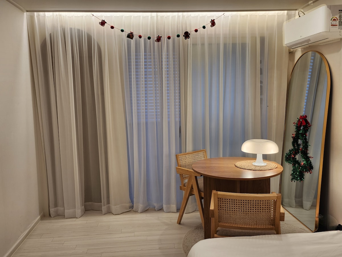 * Basé sur la marche (3 minutes du terminal de bus, 10 minutes de Hwangnidan-gil, 3 minutes du marché de Jungang) Il se trouve à proximité de diverses attractions touristiques telles que (Dépanneur à 30 secondes, Nonghyup Hanaro Mart à 7 minutes) (Soka, Green Cajon est à 2 minutes de marche) * En tant que concept de deux pièces, il n'y a pas d'endroit à partager avec d'autres invités. Espace commun entier (x) * Un parking gratuit est disponible au premier étage du bâtiment * wifi disponible dans tous les pièces * Netflix YouTube disponible * Sèche-linge à haute température et literie stérilisée sont fournis * Le lit est équipé d'un tapis électrique. (hiver) ⭐️Matériel⭐️ * Tous les ustensiles de cuisine et la vaisselle tels que les casseroles, poêles, assiettes, bols, micro-ondes, friture à air, réfrigérateur et lave-linge sont fournis. * Shampoing, après-shampoing, nettoyant mousse, dentifrice, gel douche, etc. sont équipés. Nous n'avons pas d'eau❌ en bouteille disponible, veuillez noter. - « Les visiteurs sont également inclus dans le nombre de personnes, et si vous êtes pris en photo dépassant le nombre de personnes, nous partirons sans avertissement, alors veuillez en être conscient. » -