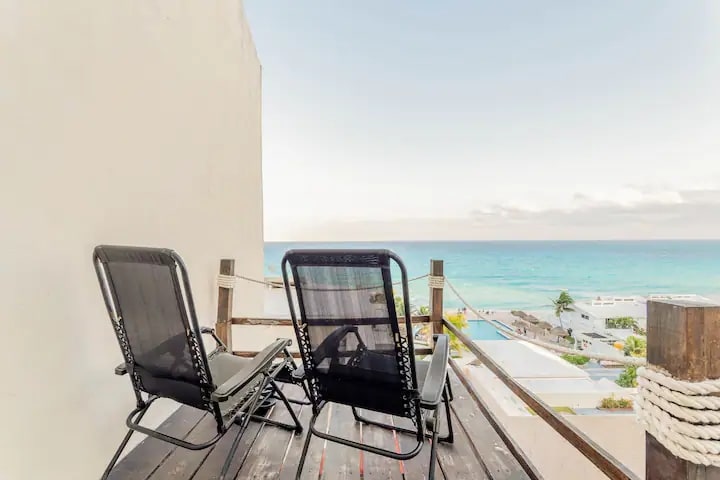 Walk out of your apartment and you will literally be on the beach! This Airbnb is an excellent option for young couples, friends and solo travelers wanting to disconnect and enjoy one of the best beaches in the Caribbean, with easy access to the tourist buses that circulate the hotel zone. (there are 2 flights of stairs to get from the street to the airbnb)
