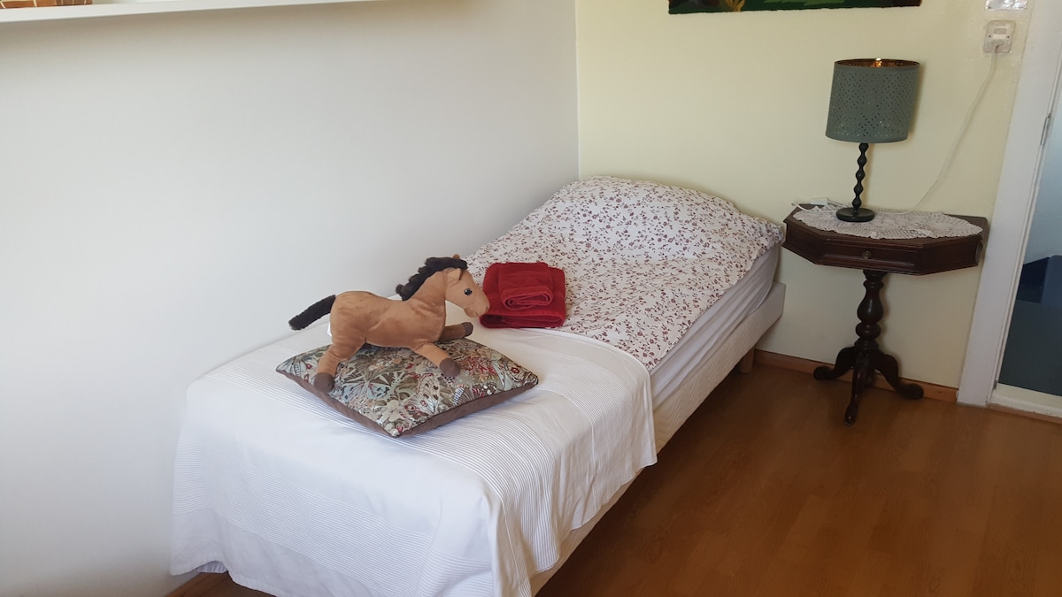 Bienvenue dans ma chambre d'hôtes idéalement située près de Skógar, la maison familiale privée (ferme) est à seulement 4 km de la cascade de Skógafoss où je propose des hébergements pour la nuit et le petit déjeuner. Dans cette chambre, je vous propose deux lits simples en mousse à mémoire de forme.