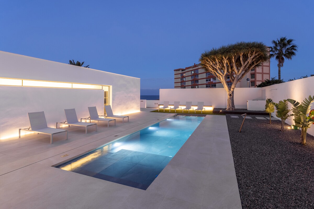 Jardin tropical paisible près de la mer, Wi-Fi fibre : Ici, il est possible de profiter du silence, de la vue sur la mer et d'un jardin plein de style et de captivité. Le coin le plus confortable est probablement son élégante piscine et le salon extérieur, invitant à profiter langoureusement des après-midi d'hiver ensoleillés et des couchers de soleil le reste de l'année. Superbe piscine. La finca est très proche de la célèbre Playa del Socorro : ambiance détendue grâce aux magnifiques couchers de soleil et aux compétitions de surfeurs