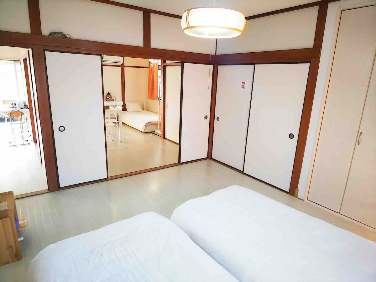 5 grandes chambres confortables près du métro, à 5 min de l'USJ et à 1 min de Namba