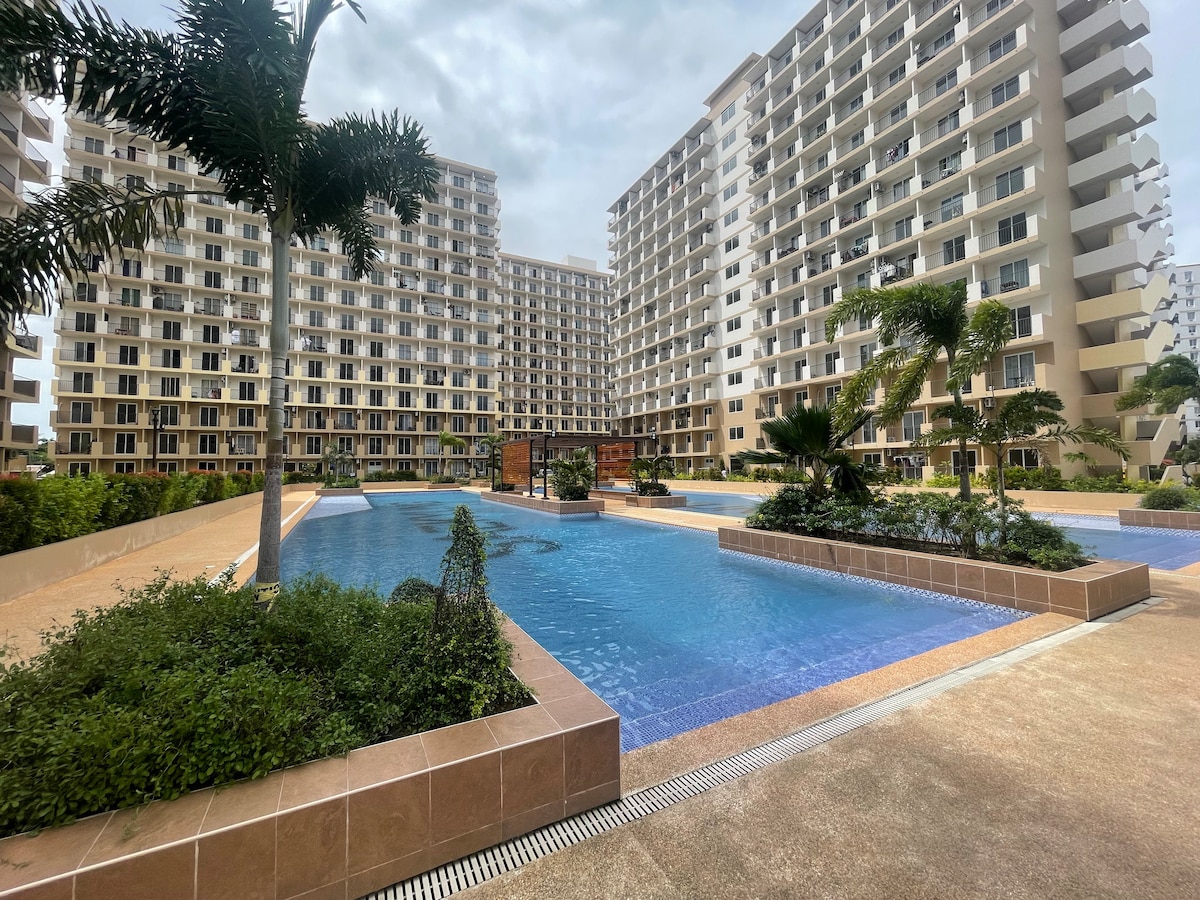 Créez vos souvenirs les plus vibrants dans notre espace inspiré de la terre cuite avec balcon face à la piscine énigmatique. Le logement est proche de CCLEX qui vous emmènera au cœur de la ville de Cebu en un rien de temps. Votre séjour est littéralement à quelques minutes de l'aéroport, des centres d'affaires, des centres de spa, des marchés, des restaurants et des plages de Mactan. La chambre vous offrira une expérience de vie de villégiature avec une touche chic minimaliste. Vous pouvez cuisiner dans la kitchenette, utiliser le lave-linge et ranger vos affaires dans notre grand réfrigérateur.