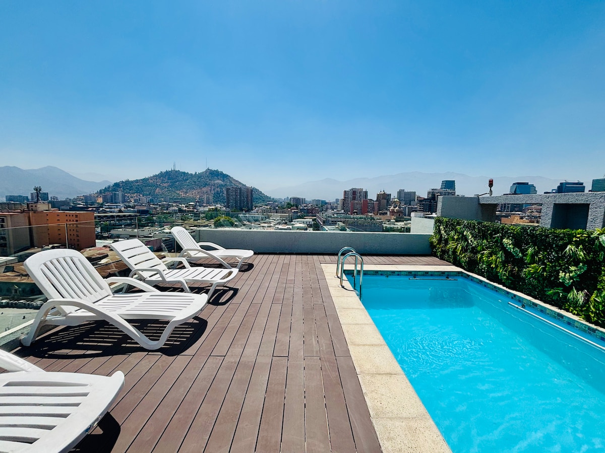 Appartement neuf, élégant, avec fenêtres thermo panneau , moderne et calme. Situé dans le centre historique de Santiago, idéal pour se reposer après la journée de travail. Dans le secteur, vous trouverez des restaurants et des bars à distance de marche. Proche du métro et de la locomotion publique. Parfaitement équipé pour que vous vous sentiez comme chez vous. Lisez les commentaires de nos clients pour que vous nous connaissiez un peu plus Appartement au deuxième étage, avec vue sur la piscine dans la cour intérieure et dispose d'un ascenseur.