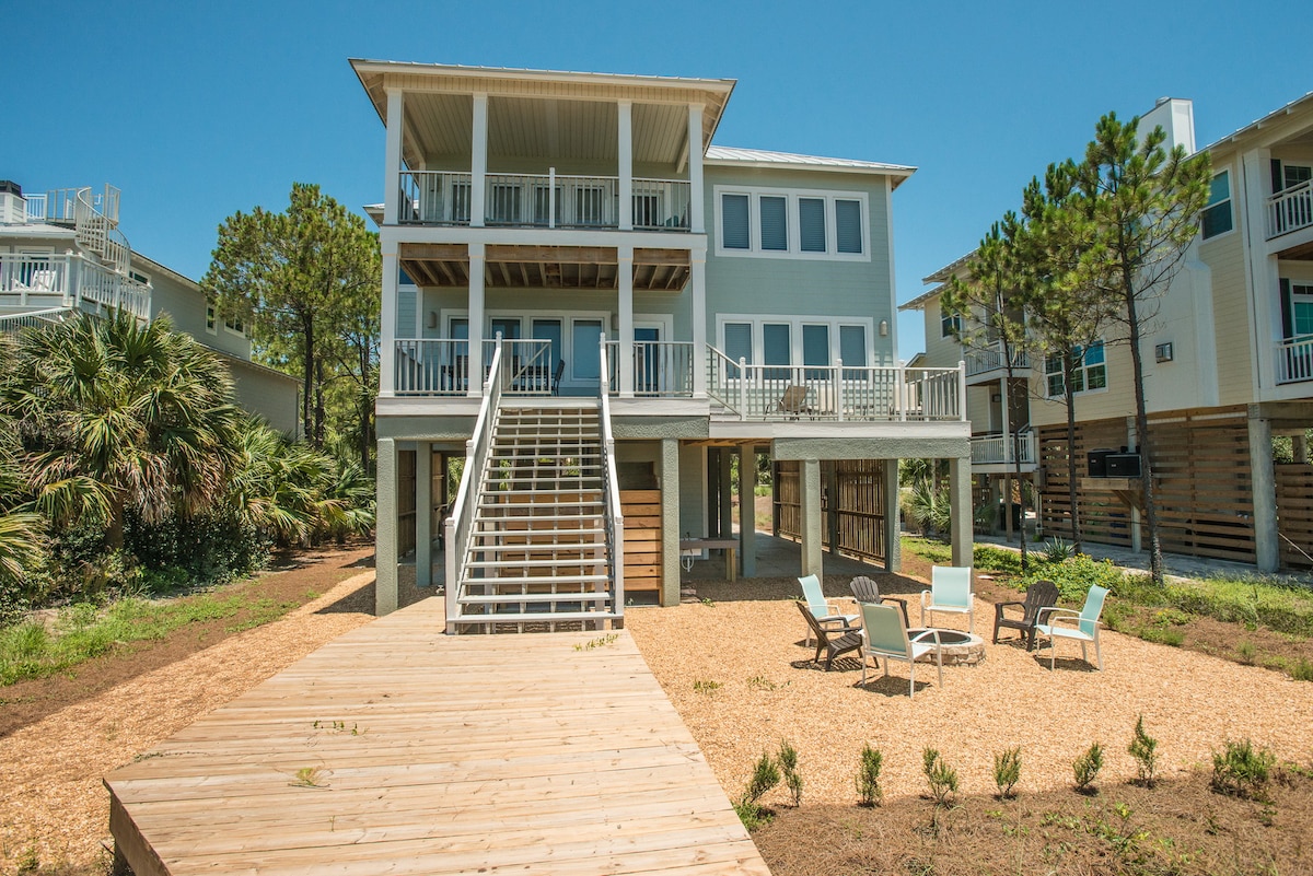 Tout nouveau sur le marché de la location à l'extrémité nord du Cap dans les dunes isolées et à 12 maisons du parc commémoratif T.H. Stone, vous pouvez marcher plus de 8 miles sur la plage de sable blanc. Ouvert, confortable, mobilier haut de gamme et épuré, la meilleure vue sur la plage du Cap avec 2 chambres face au golfe (nouvelles téléviseurs intelligents). Cette maison de plain-pied de 3 chambres et 2 salles de bain est un endroit PARFAIT pour s'évader entre amis et en famille. 4Sunsets-4 chambres, propriété sœur à côté si vous avez besoin de plus d'espace https://www.airbnb.com/h/4sunsets