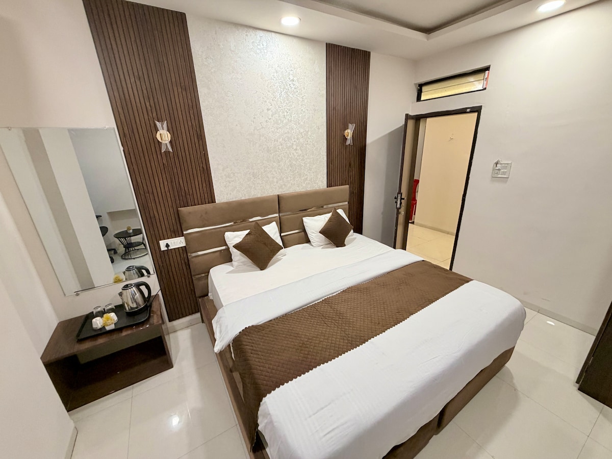 Experience comfort and convenience at our Executive Stay in Indore, ideal for business and leisure travelers alike. This well-appointed room features a plush bed, private bathroom, air conditioning, high-speed Wi-Fi, and a smart TV for a relaxed and productive stay. Located in a prime area, you’ll be close to major commercial hubs, restaurants, and shopping centers. The space is thoughtfully designed to offer both functionality and relaxation, with clean interiors and essential amenities.