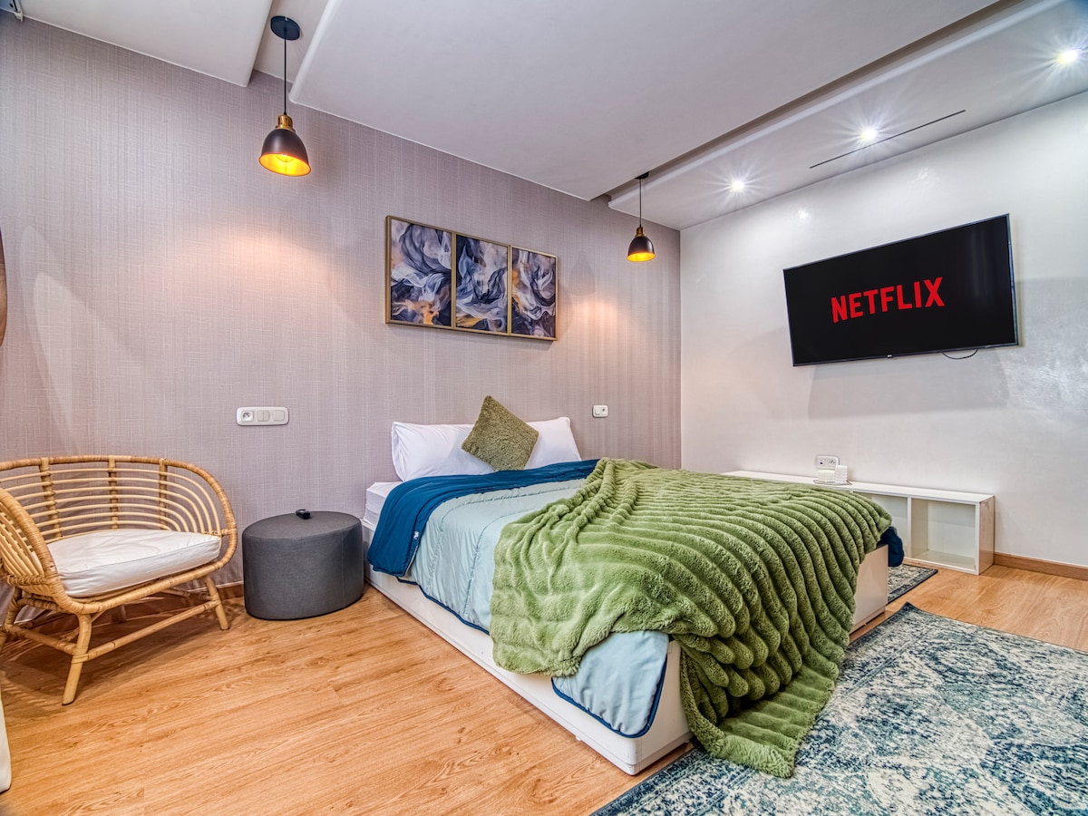 Spacieuse villa avec une belle piscine privée et une grande terrasse aménagée pour se détendre en famille. Cinq chambres confortables, plusieurs salons lumineux, 2 cuisines équipées et salles à manger conviviales. Wi-Fi haut débit, TV Netflix, climatisation. Profitez d’une atmosphère paisible tout en étant proche des quartiers animés d’Agadir. WiFi haut débit, TV avec Netflix et climatisation. Services à la demande : ménage, baby-sitting et cuisinière disponibles pour rendre votre séjour unique.