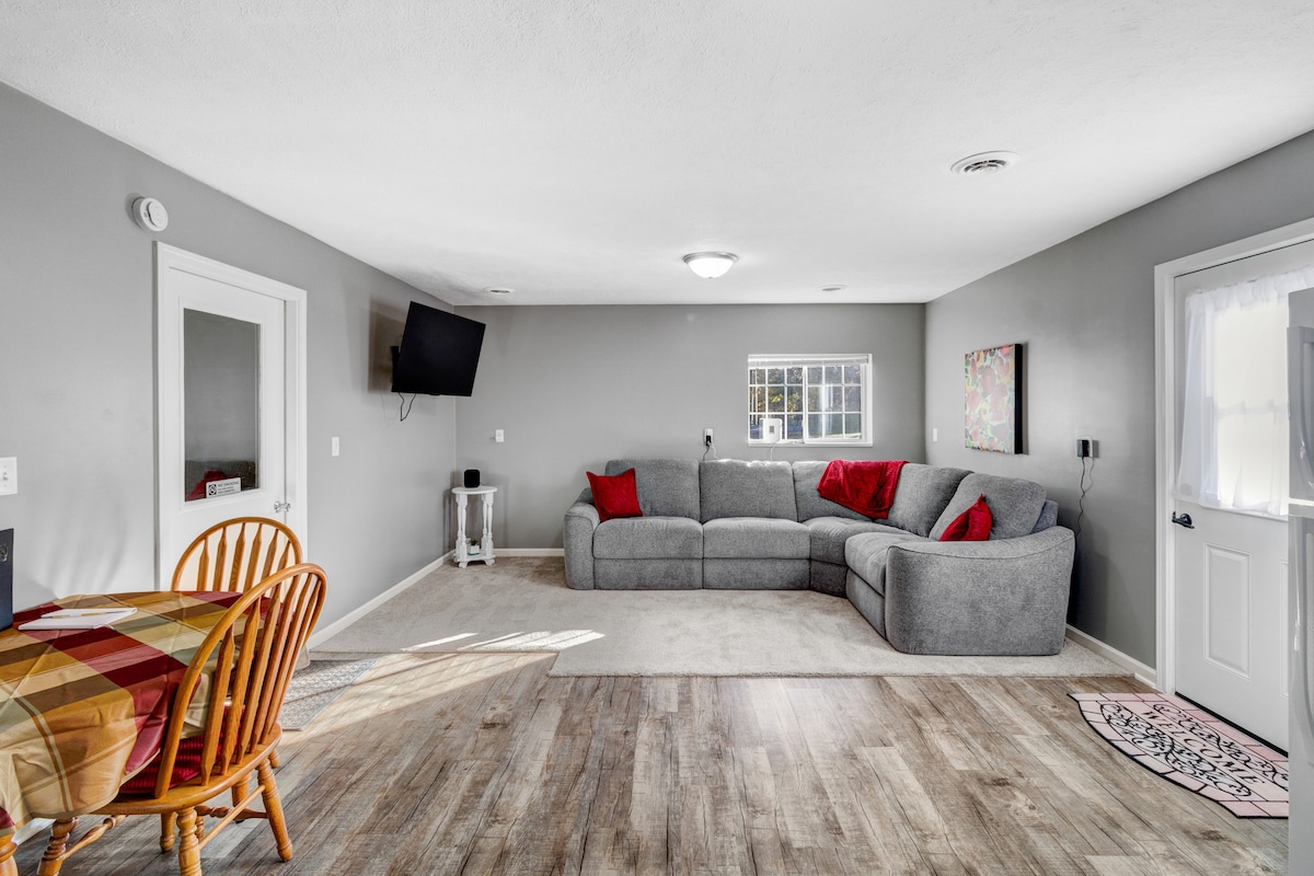 Détendez-vous dans cette grange confortable de plain-pied (appartement de style grange polaire) entre Grand Rapids et Lansing. Comprend une cuisine complète, un lave-linge/sèche-linge, une connexion Wi-Fi, une section inclinable et un grand garage. Profitez de la vue sur la campagne : l'endroit idéal lorsque les options d'hébergement local sont limitées !