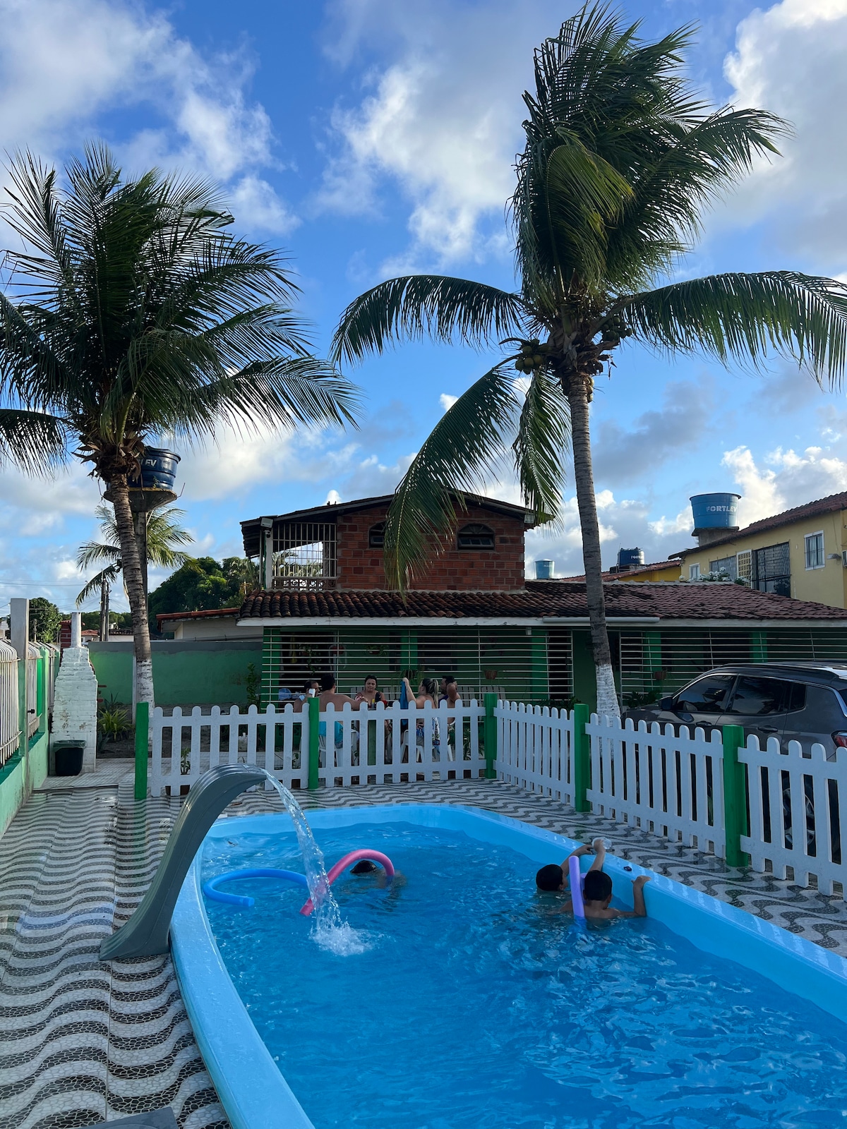 Maison avec piscine à Itamaracá à Pilar (Rua Senador Nilo Coelho, 136) à environ 1 km de la place du pilier vers Jaguaribe. Allez à gauche avant l'entrepôt de grêle. Rez-de-chaussée + rez-de-chaussée. Notre maison dispose de 3 chambres et 3 salles de bains (4 lits simples, 4 matelas et 1 lit double) 1 Smart TV 24', Wi-Fi, 4 ventilateurs, barbecue et cuisine de base complète (casseroles, mixeur, vaisselle, verres et couverts) parking pour 3 voitures. Piscine 8x4 Profondeur de 1m à 1,5m