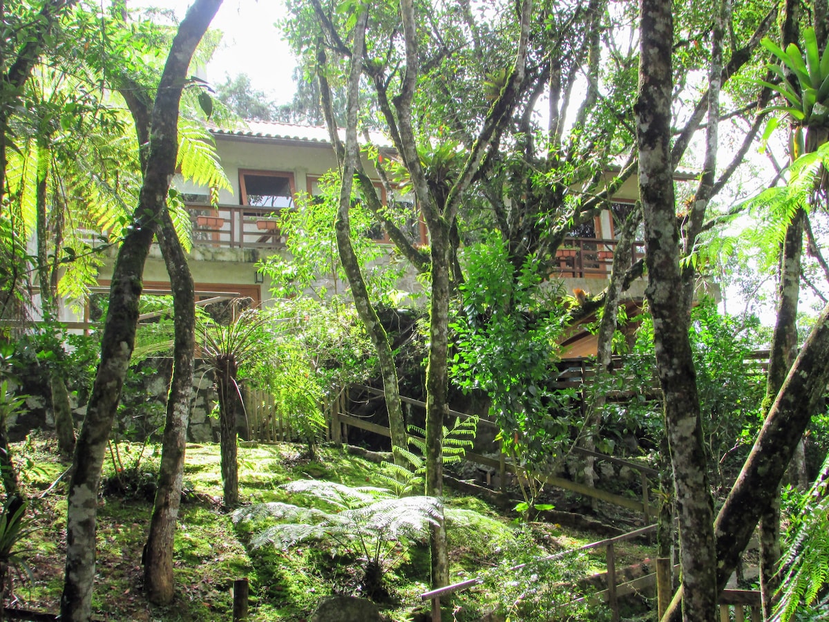 Vous adorerez la décoration élégante de ce logement charmant. Excellent pour ceux qui cherchent à se reposer au son des eaux et à se réveiller avec les sons des oiseaux, nous sommes entourés par l'environnement agréable de la nature où nos clients peuvent profiter d'un ruisseau qui divise la propriété, s'amuser dans une mini tyrolienne et une balançoire radicale ! Un endroit où les voyageurs tomberont sûrement amoureux et voudront revenir bientôt.