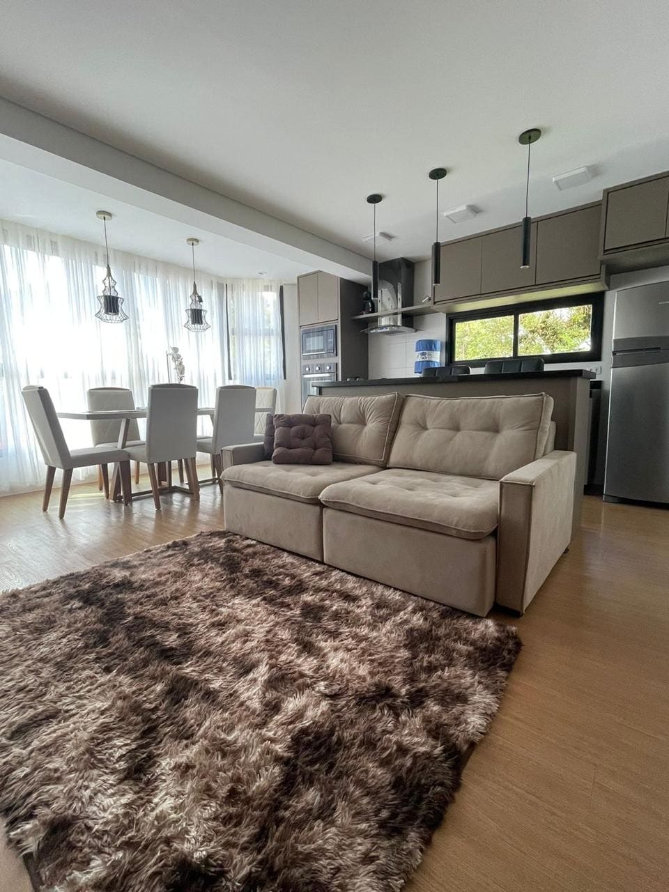Moderno e confortável para até 5 pessoas. Acesso asfaltado, próximo da rua principal ,supermercados e restaurantes. Prédio c/ elevador e 1 vaga de garagem coberta demarcada. Sala com lareira, TV/sound bar e Globoplay. Cozinha equipada. Wi-fi para home office. 2 Quartos: 1 suite c/ TV cama queen + cama solteiro auxiliar e 1 quarto casal. 2 aquecedores a óleo. Roupa de cama, toalhas e cobertores disponíveis no apartamento. Check in após 17h e Check out até 12 h Não aceita Pets.