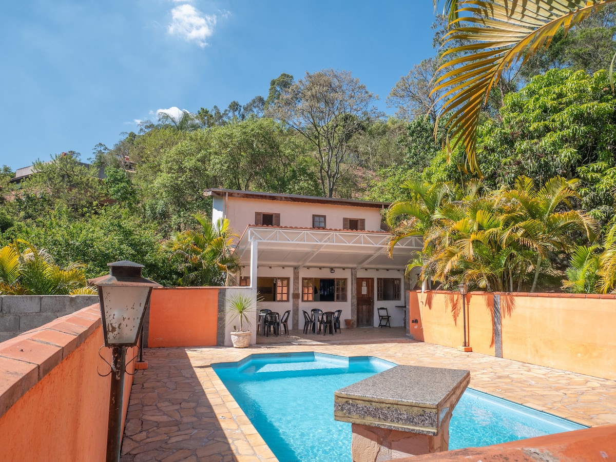 Détendez-vous en famille et entre amis dans un grand espace avec siège social avec quatre chambres, un salon 03 chambres avec cheminée, une télévision et une connexion Wi-Fi. Espace gastronomique avec barbecue, four et poêle à bois, salle de jeux avec table de billard et ping-pong ; Piscine climatisée avec chauffage solaire et vue panoramique incroyable ! Espace absolument parfait pour se reposer, mais aussi pour les loisirs et le plaisir ! Lieu avec beaucoup d'intimité, d'espace vert, de loisirs et de PAIX pour votre famille ! Et tout cela près de São Paulo =)