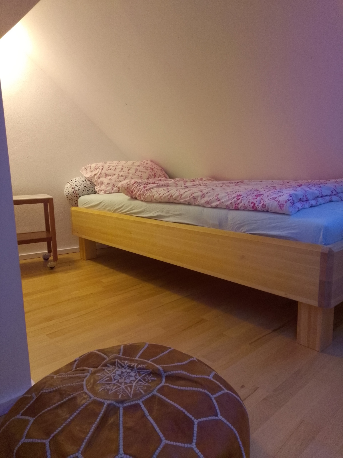 Je loue un appartement indépendant dans ma maison individuelle. Grâce à une entrée et un couloir communs au rez-de-chaussée, vous avez accès à votre salle de bain personnelle avec douche et à un appartement composé de - une pièce avec cuisine, poste de travail et coin salon - une chambre avec un lit de 140 et une commode - terrasse privée Distances : - Arrêt de bus et supermarché 5 min - Centre-ville à pied 20, en bus 10 et en voiture 5 min - FH est accessible en 7 min.