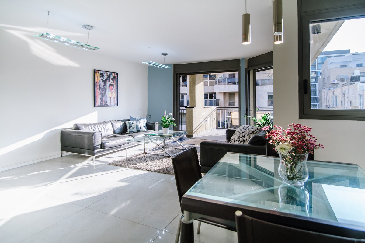 Ce bel appartement est situé dans une rue calme à sens unique, à 5 minutes à pied de la plage et de tous les meilleurs endroits de la ville ! Sortez du bâtiment pour ce qui est le meilleur emplacement de Tel Aviv ! Il y a un ascenseur privé, 2 chambres spacieuses, des placards, 2 douches, un salon confortable avec une énorme télévision intelligente de 86", une cuisine entièrement équipée, un lave-vaisselle, une machine Nespresso, un coin repas, la climatisation, un lave-linge, un sèche-linge et plus encore ! Peut accueillir un 5e voyageur. L'appartement fait 85 m² plus 7 m² de balcon.