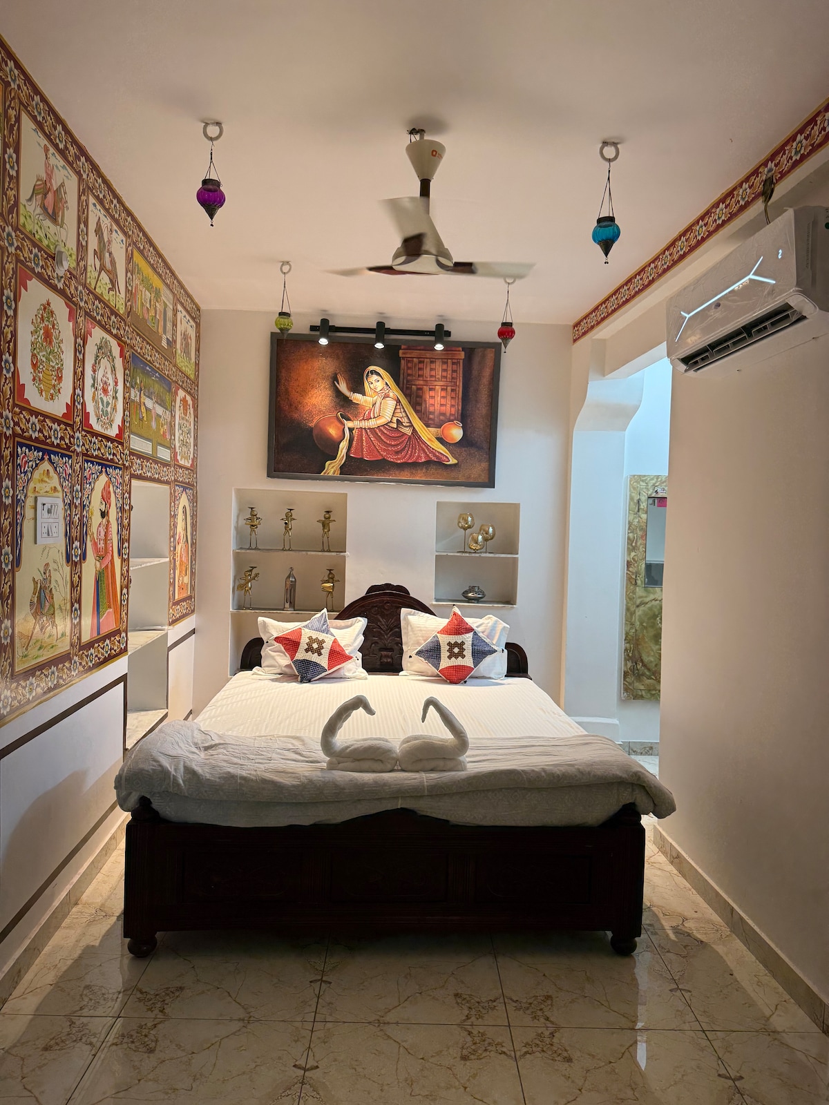 Notre maison chérie de 80 ans, située au cœur de la ville. Idéale pour vous et votre famille, avec un emplacement pratique pour une exploration facile. La plupart des destinations touristiques de la ville sont situées à 40 minutes à pied ou à 10 minutes en voiture. Embrassez le charme de notre maison et la commodité de son emplacement central. • À 10 minutes de l'aéroport de Jodhpur. • À 5 minutes de la gare. - À 10 minutes de Mehrangarh - À 9 minutes du palais Umaid Bhawan. - À 5 minutes de la Tour de l'Horloge et des célèbres marchés locaux.