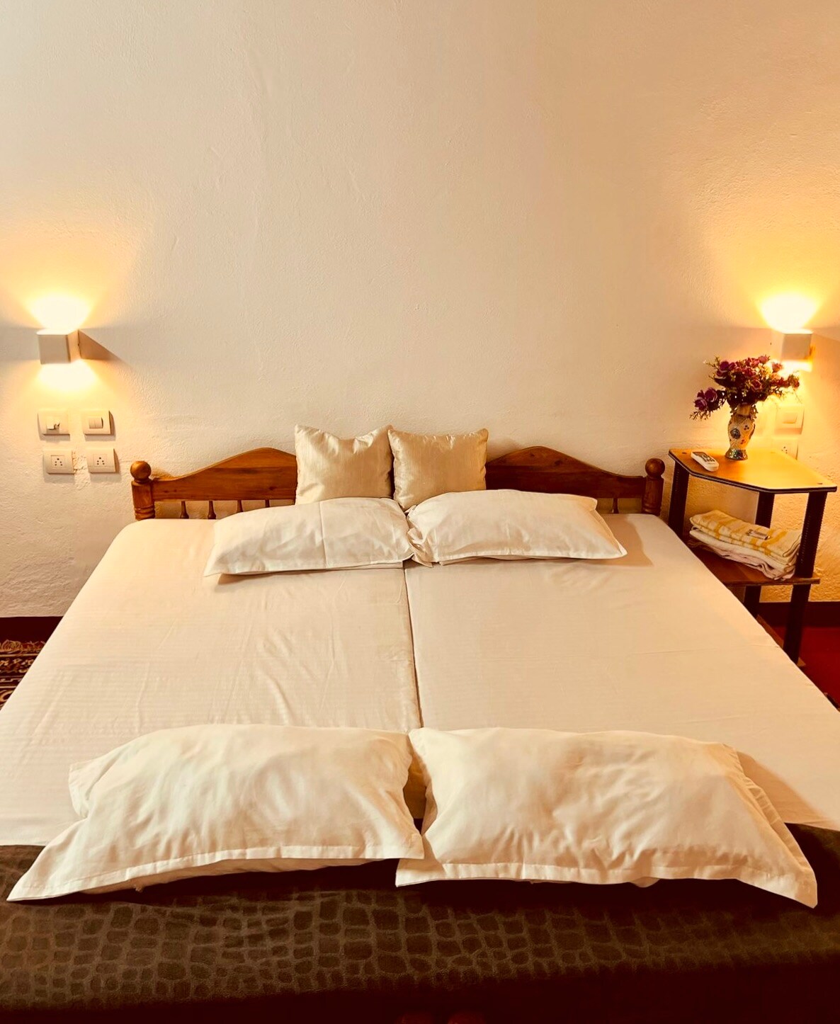 Notre maison extérieure qui a été construite il y a plus de 100 ans dispose d'une chambre avec une salle de bains privative et une véranda. Cette maison a été ajoutée à notre maison ancestrale de 300 ans plus tard pour accueillir des invités. La maison a été restaurée et rénovée en gardant intact son caractère et est meublée avec des meubles anciens. Les seules commodités modernes que vous pourriez trouver seraient la climatisation et les accessoires de salle de bains.