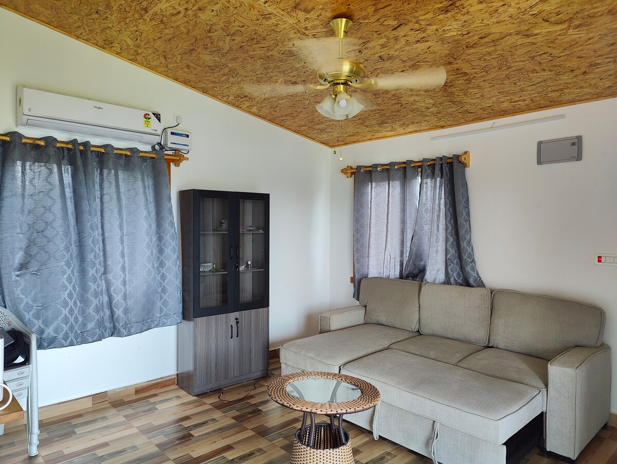 Situé dans un quartier résidentiel calme, ce logement est parfait pour les couples . La maison dispose de deux chambres, d'un climatiseur en une. Un salon avec un projecteur installé et une barre de son pour le divertissement dernier cri, OTT disponible. Des ustensiles sont disponibles et la cuisine peut être utilisée pour une cuisson mineure, à condition que le voyageur nettoie après lui-même, y compris la vaisselle et la cuisinière. Nous demandons aux voyageurs de mentionner le nombre exact de personnes qui viennent et de fournir également des preuves d'identité.