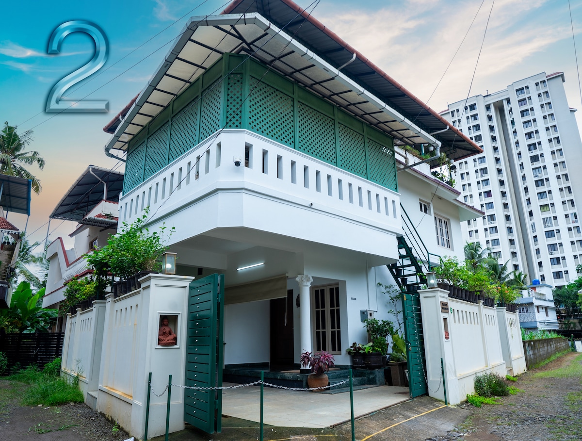 Une maison d'héritage durable de qualité supérieure dans l'île pittoresque de Vypin à Kochi est équipée d'Internet, d'une alimentation de secours par onduleur, de vidéosurveillance, d'une bibliothèque familiale, d'une salle de sport, d'un service de chambre, d'une passerelle autour de la maison et d'une petite salle polyvalente climatisée qui peut se convertir en home cinéma, en salle de fête/réunion et en aire de jeux de tennis de table. Nous sommes à seulement 15 minutes de la ville et l'aéroport international le plus proche est à une heure de route. Des attractions touristiques bien connues se trouvent dans un rayon de 10 km.