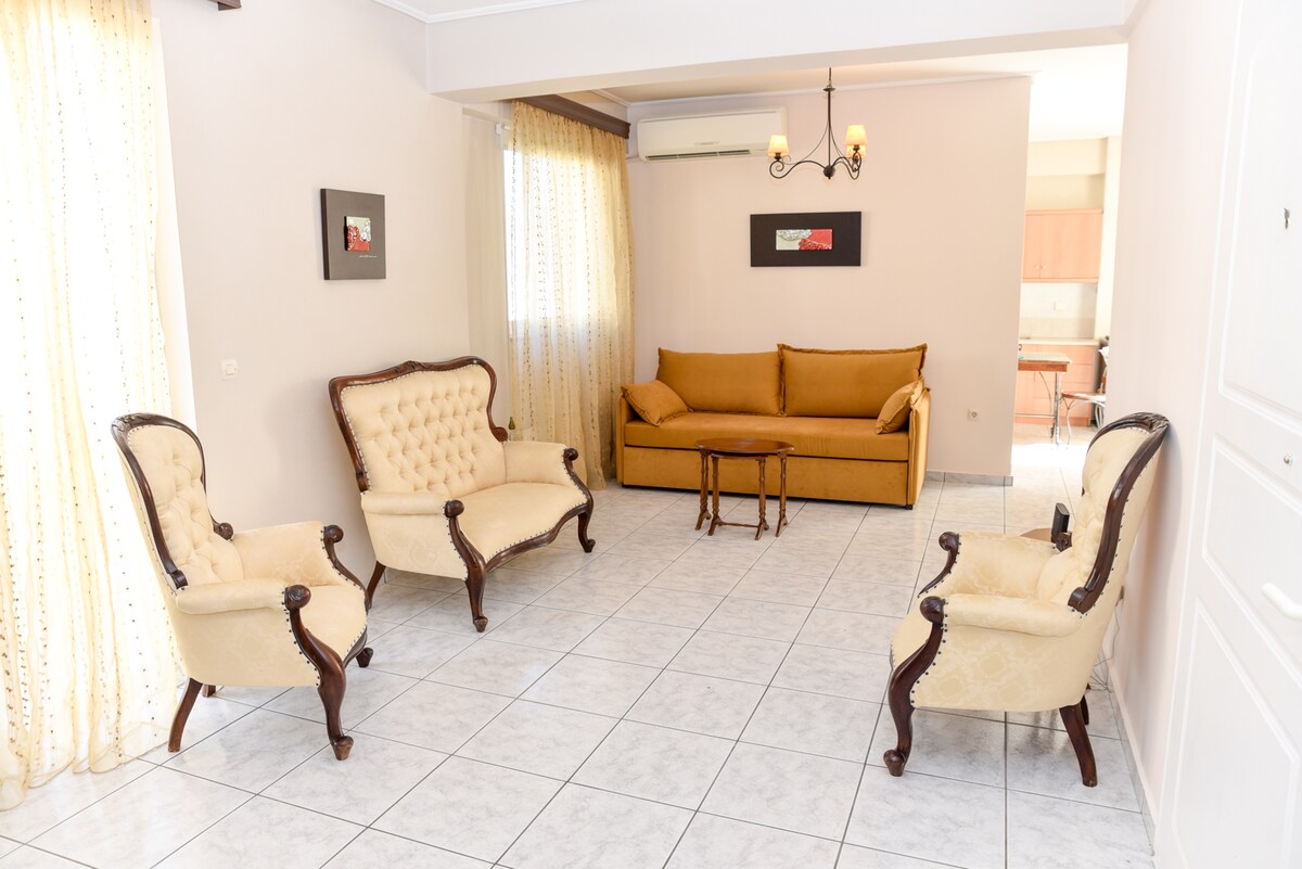 Welcome to our Sea Breeze apartments on Navarinou Rd! Located at the heart of all the beach action, surrounded by beach cafeterias, boutiques, & restaurants. The apartment is located across the beach with breathtaking views of the Mediterranean Sea and Mt Taygetos. This listing is for apartment #3 &4, facing West. Great for families. This beach front apartment comes with no kitchen, has a fridge, microwave, dishes, cutlery, kettle, coffee, bath towels, blow dryer, laundry . Free street parking.