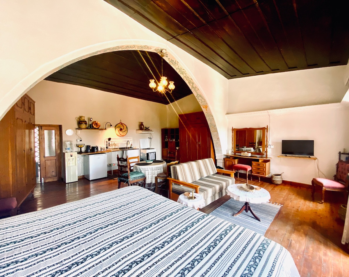 Are you stressed from work ? Do you want to escape from the city ? Gourri is your answer, 40 mins driving distance from Nicosia. You will experience peaceful mornings and beautiful nights. It’s a traditional guest house in the heart of Gourri. It’s near the church of Saint George and local restaurants. Gourri Mountains is the highlight, this is the view you will enjoy when you wake up in the morning from your room, from kitchen’s window when you cook and our balcony.