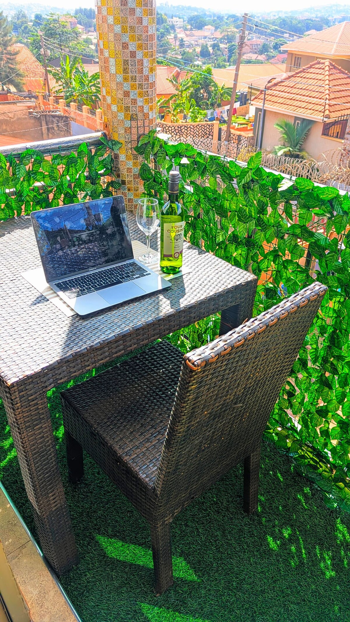 Un petit studio confortable et élégant à quelques minutes du centre-ville de Kampala... Conçu intelligemment pour le confort, avec des détails bien pensés et une atmosphère chaleureuse partout. Entouré d'orchidées et de verdure, vous profiterez d'un patio privé pour des moments paisibles en plein air. Ne manquez pas la terrasse sur le toit ; parfaite pour profiter d'une vue imprenable à 360° sur la ville !