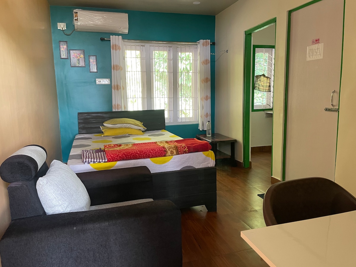 Studio propre et privé avec parking gratuit près de l'hôpital GNRC et du supermarché Dispur, idéal pour les voyageurs en solo, les couples, les professionnels et les petites familles. Lit double + cuisine + salle de bain attenante + coin salon Utilisation gratuite de la climatisation, du Wi-Fi, de la télévision, du réfrigérateur, de la bouilloire électrique Peut accueillir jusqu'à 3 adultes ; lit simple supplémentaire pour 3ème adulte ou enfant disponible moyennant un supplément (frais ajoutés automatiquement au moment de la réservation) Lit bébé gratuit disponible pour les enfants de moins de 2 ans sur demande
