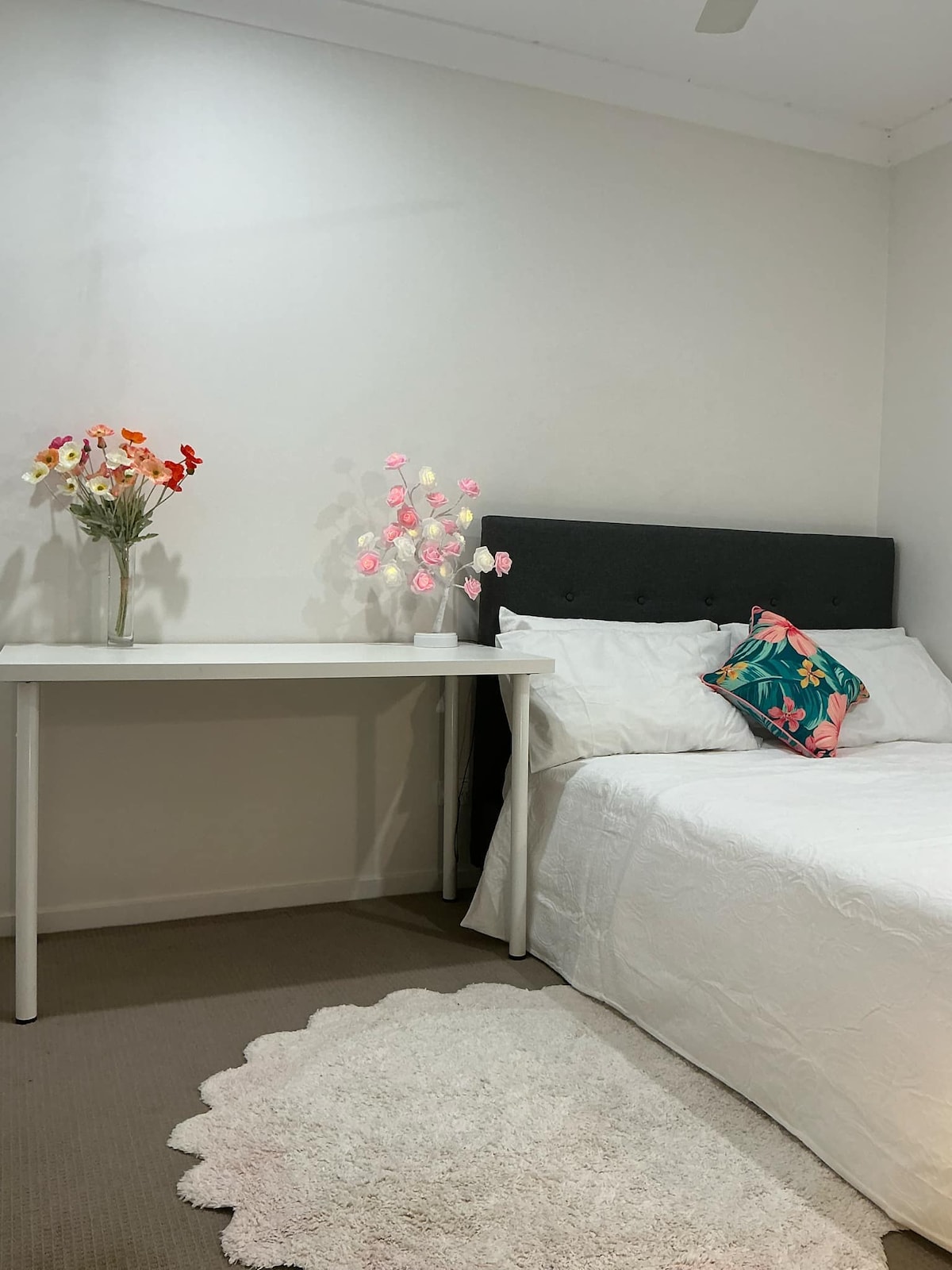 Welcome to your private rest stop. This spacious, self-contained one-bedroom guest suite is nestled on the ground floor of a 1970s high set home in a suburban street. Easy access to the M1, M3, and Logan motorways means exploring the area is a breeze. The kitchen is equipped with basic cooking equipment and there is a laundry. The workspace ensures you can stay productive. Whether you're here for business or personal reasons, you’ll find our space will give you a comfortable place to stay.