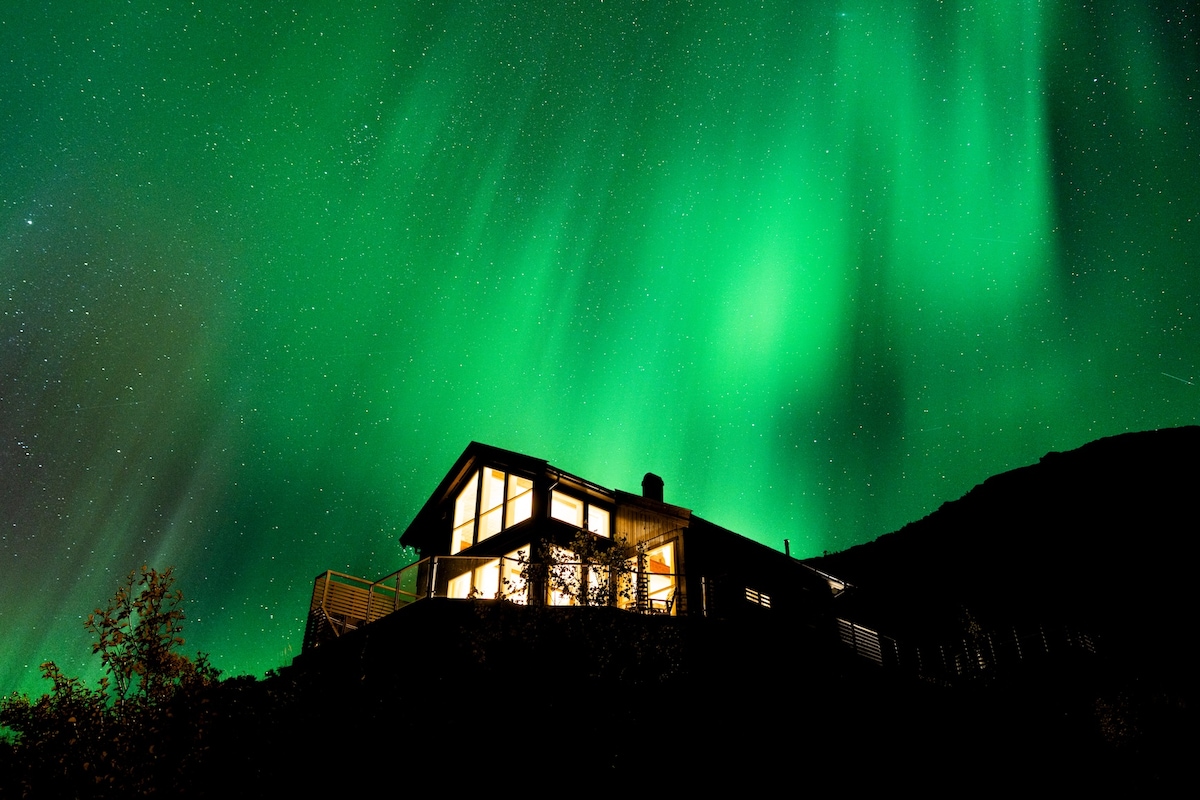 Cabanes en bord de mer près de Tromsø | Vue sur les aurores boréales