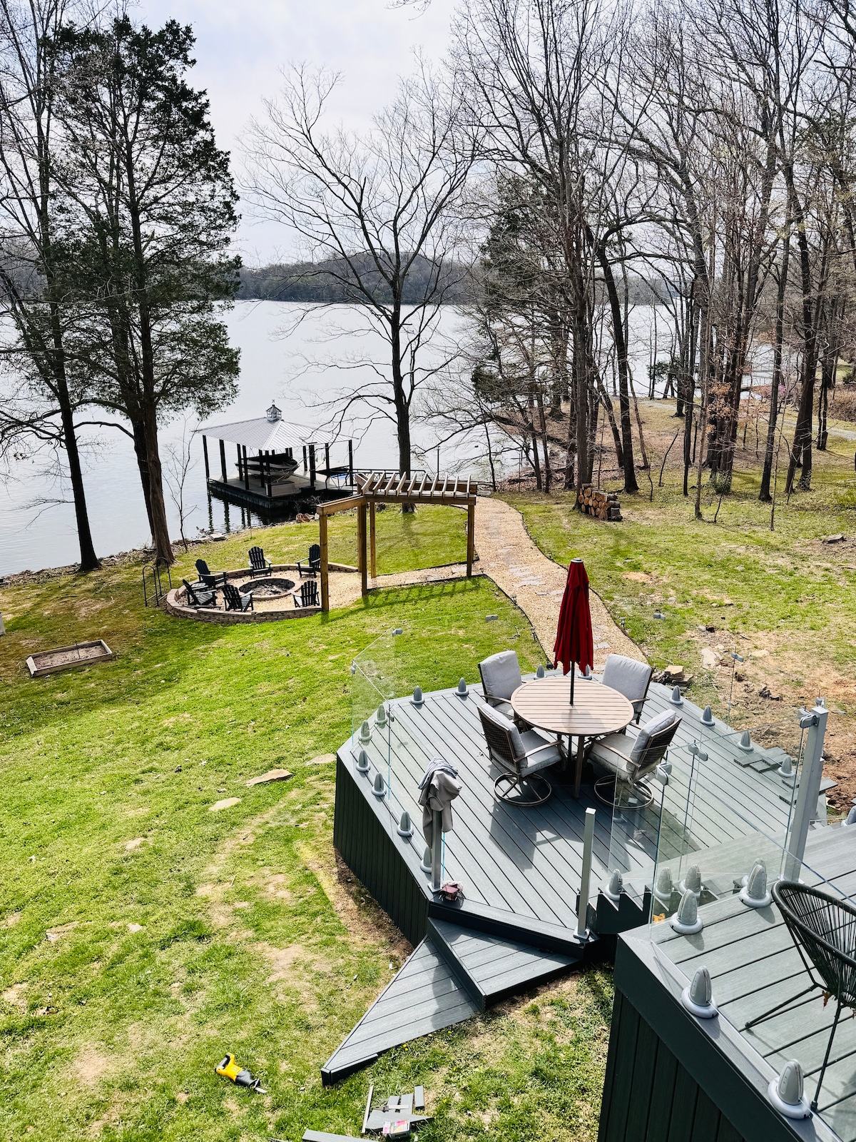 Bienvenue à The Anchor Dome, un dôme géodésique de luxe situé sur le lac Kentucky, avec son propre ponton privé ! Cette escapade unique en bord de mer comprend un mur vitré panoramique face au lac, un jacuzzi privé, une cuisine entièrement équipée, un coin chambre romantique avec lit King Size et une grande terrasse privée avec foyer, sièges et salle à manger extérieure. Anchor Dome est situé dans un quartier calme en bord de lac avec des maisons à proximité, dont une à côté. Le dôme offre tout de même un sentiment d’intimité grâce à son aménagement et à son agencement extérieur, mais il n’est pas entièrement indépendant.