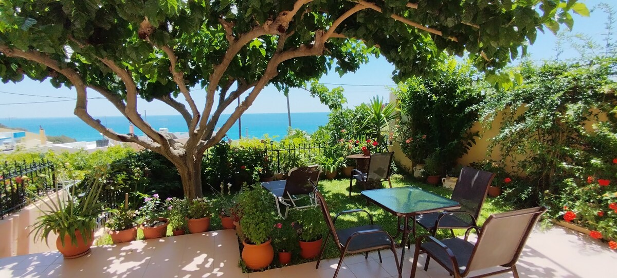 L'étage supérieur de la maison est loué aux invités et est meublé comme un appartement. Depuis la balcon vous avez une vue magnifique sur la mer. Autour de la maison il y a un jardin, un endroit fantastique pour profiter de l'occasion de se reposer et de se ressourcer un peu. Le hamac et le bruit des vagues sont inclus dans votre arrangement. La maison est à quelques pas de la mer et le village de Keratokampos est bien caché derrière un certain nombre de flancs de montagne. Soyez bienvenue !