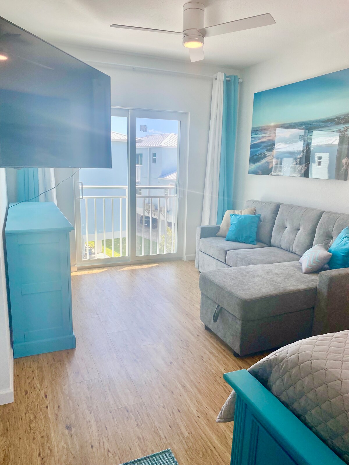 Profitez du charme des Keys dans notre escapade sereine pour les couples ou les familles. Nichée à quelques pas d'une piscine chauffée et de l'océan, cette retraite à thème marin offre un confort king size, un canapé-lit confortable et un balcon avec moustiquaire pour des soirées intimes. Plongez dans des aventures locales avec du matériel de plage disponible, ou détendez-vous dans notre espace aéré, avec une cuisine entièrement équipée et une décoration de bon goût. Idéal pour ceux qui recherchent un mélange de détente et d'exploration océanique, c'est votre havre de paix côtier idéal.