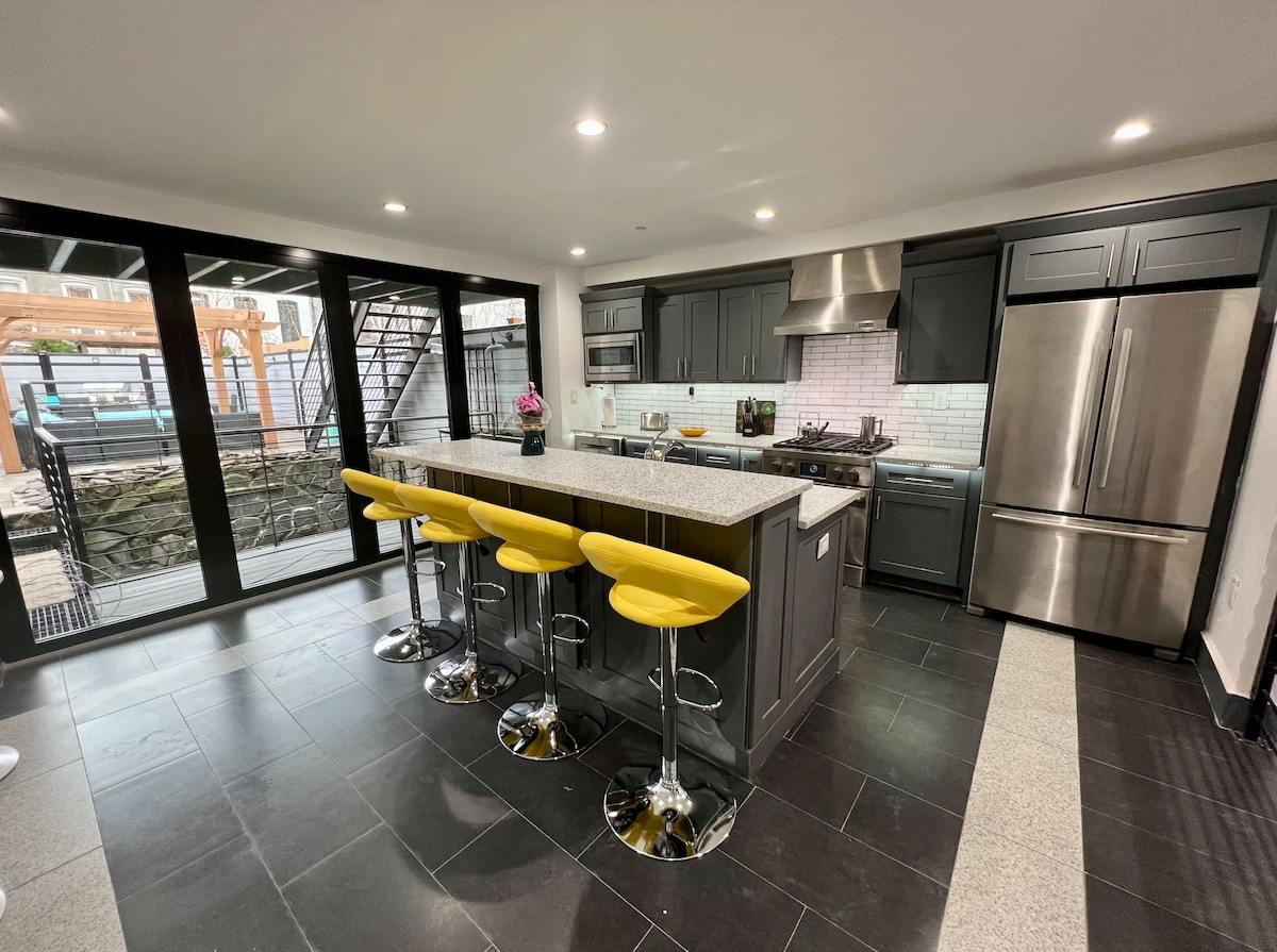 Profitez d'être en plein centre-ville de JC dans cet appartement historique (adapté aux familles) d'une chambre en grès brun récemment rénové. Profitez d'une cuisine entièrement équipée qui donne sur une cour arrière privée. À quelques pas de Van Vorst Park, Liberty State Park et du train Path vers New York. Le logement est entièrement équipé avec le Wi-Fi, des stores occultants, la climatisation, une télévision et un gril et un foyer dans l'arrière-cour. Numéro d'enregistrement STR-000596-2023