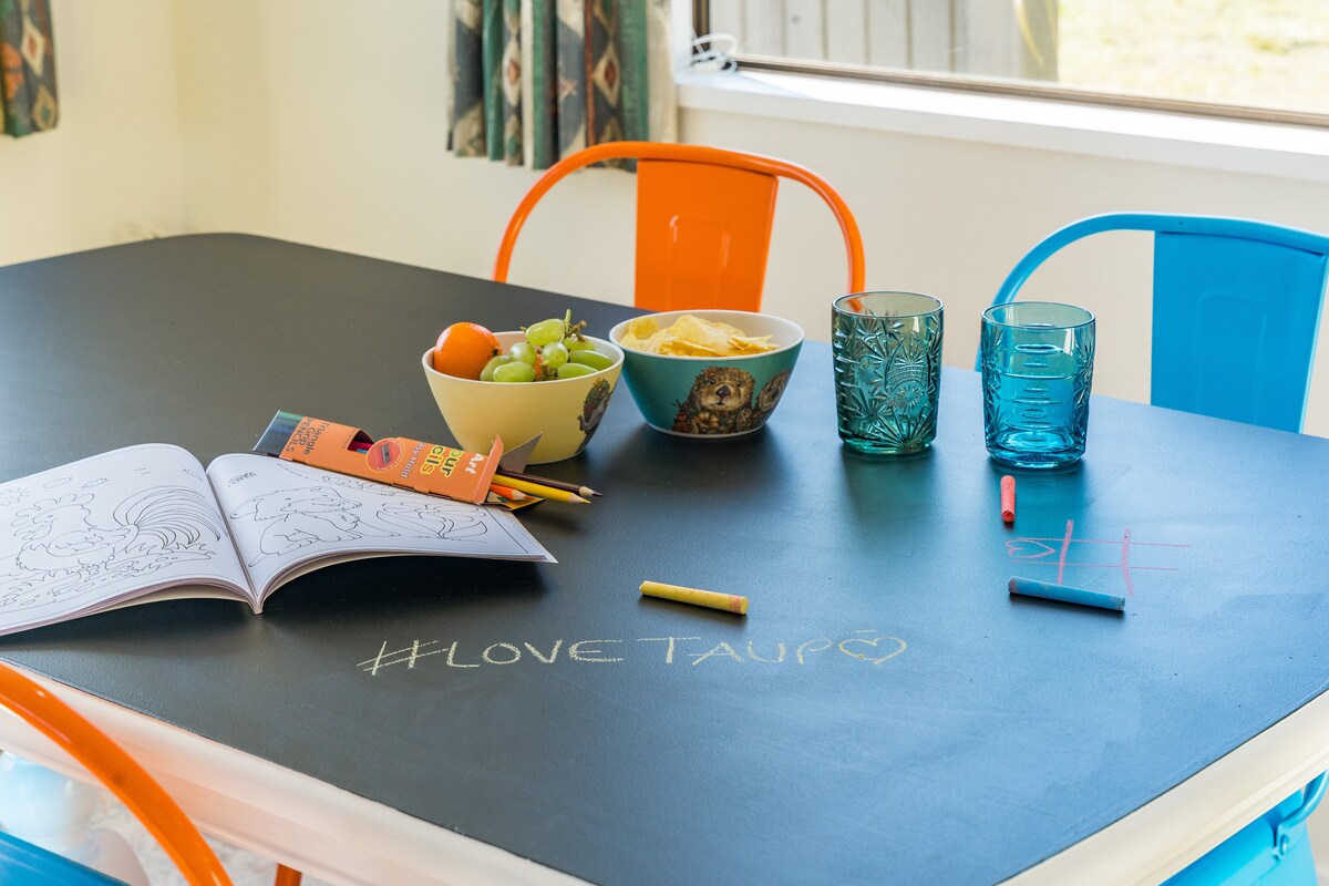 Notre maison moderne est à 15 minutes de Taupō, mais ressemble à un refuge privé. Calme et isolé, il donne sur le lac Taupō et le mont Ruapehu, avec de superbes couchers de soleil. Idéal toute l'année, il dispose d'espaces extérieurs avec barbecue, de grandes fenêtres et d'une cheminée double face. La baie de Whakaipo est à 5 minutes pour la baignade ou la marche, avec de nombreux sentiers de brousse à proximité. Ne convient pas aux enfants. Lave-linge, sèche-cheveux, articles de toilette et fer à repasser non fournis.
