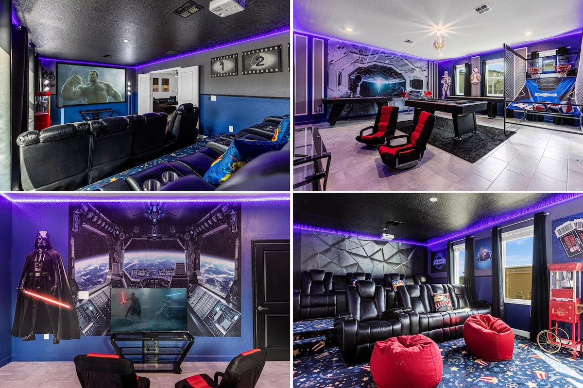 Maison de vacances Stargazer Villas impeccable et bien équipée au Storey Lake Resort ! À quelques minutes en voiture de Disney et à proximité des attractions, des magasins et des restaurants. Cette maison de vacances de la région d'Orlando est un favori des voyageurs et dispose d'une piscine chauffée (sans frais supplémentaires) pour que votre famille puisse se détendre après une journée bien remplie dans les parcs. Avec des chambres à thème Toy Story et Mickey, ainsi que trois suites principales, ainsi qu'un loft de cinéma Star Wars et une salle de jeux Avatar !