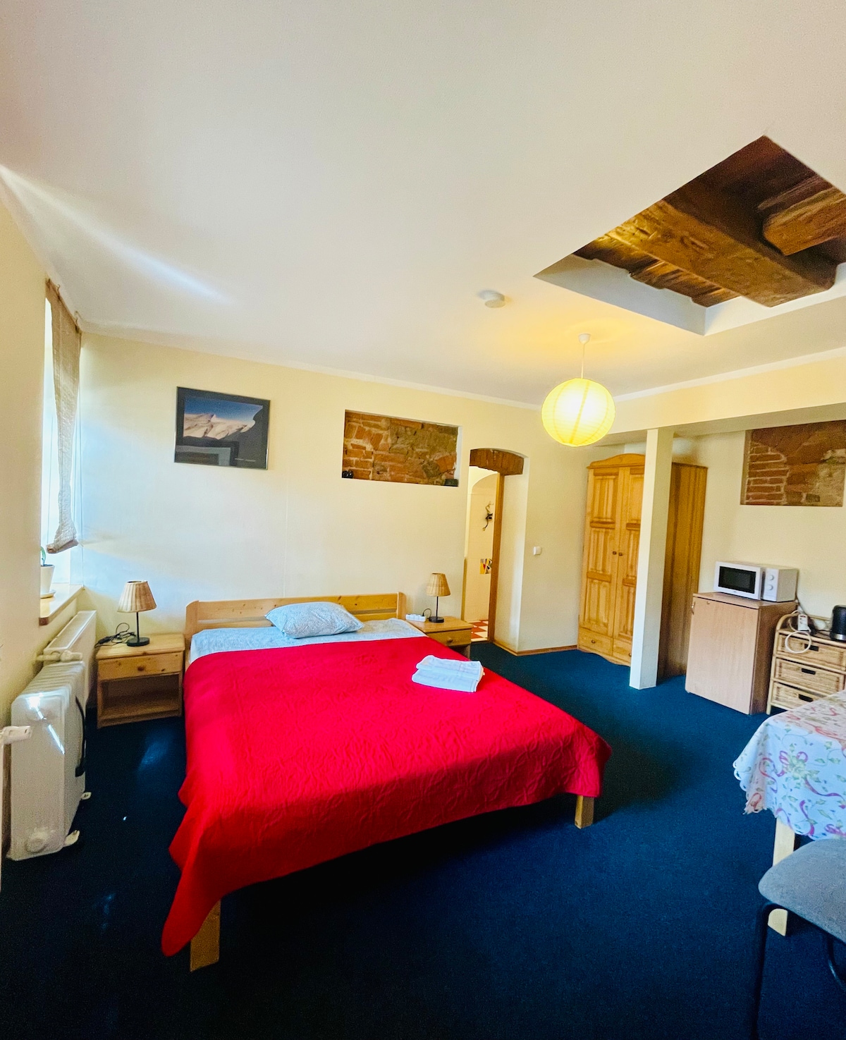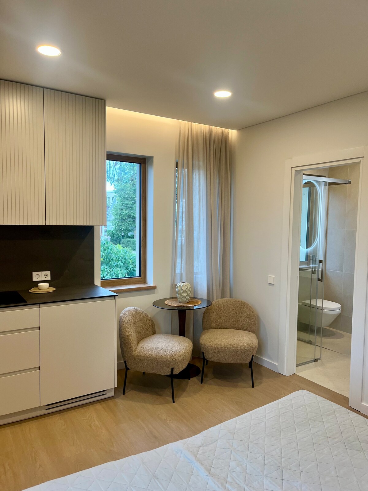 Un studio confortable d'une chambre élégant et nouvellement meublé avec des équipements hôteliers au cœur de la vieille ville. Il dispose d'un lit double confortable, d'un canapé, d'une cuisine équipée avec une sélection de thés variés, d'un bureau polyvalent pour le travail et les loisirs, d'une salle de bains avec douche. Comme l'appartement est situé dans la vieille ville, il est entouré par le marché de la vieille ville, des bars animés ainsi que de belles rues étroites. Un code clé vous sera envoyé pour entrer dans votre chambre. Une copie de votre pièce d'identité vous sera demandée pour l'application d'enregistrement en ligne.
