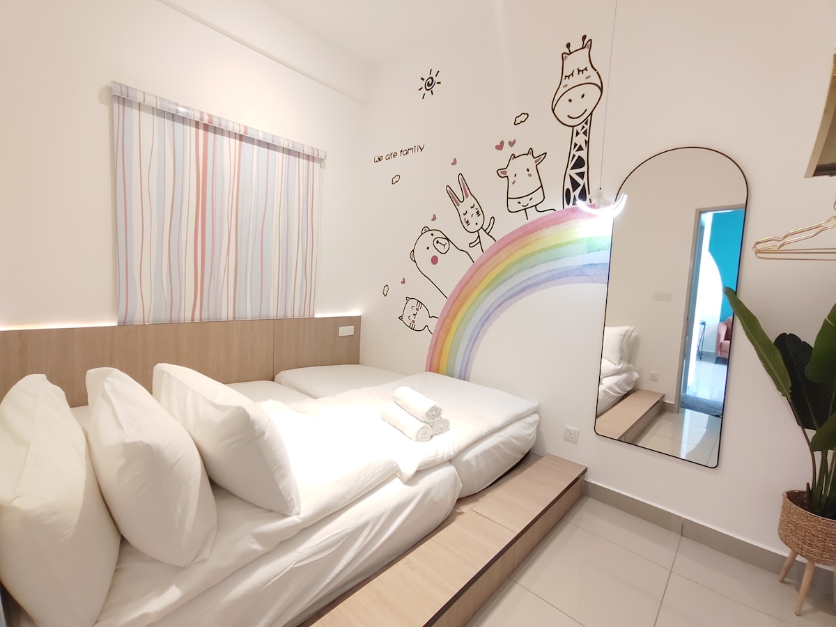 Loft & Shade is a contemporary homestay studio that combines sleek style with cozy comfort. Featuring elegant wooden partitions and a sophisticated black-and-white color scheme, this studio offers a chic and inviting space for two guests. - If this listing do not meet your requirement, please inbox us, we have other Units in the same apartment building for you to choose from. Poolview, Cityview, Seaview, Couple / Family Unit etc.