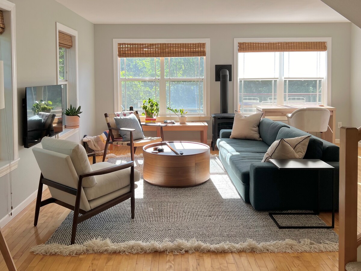 Escapade moderne avec vue sur la montagne (10,5 hectares, chiens bienvenus)