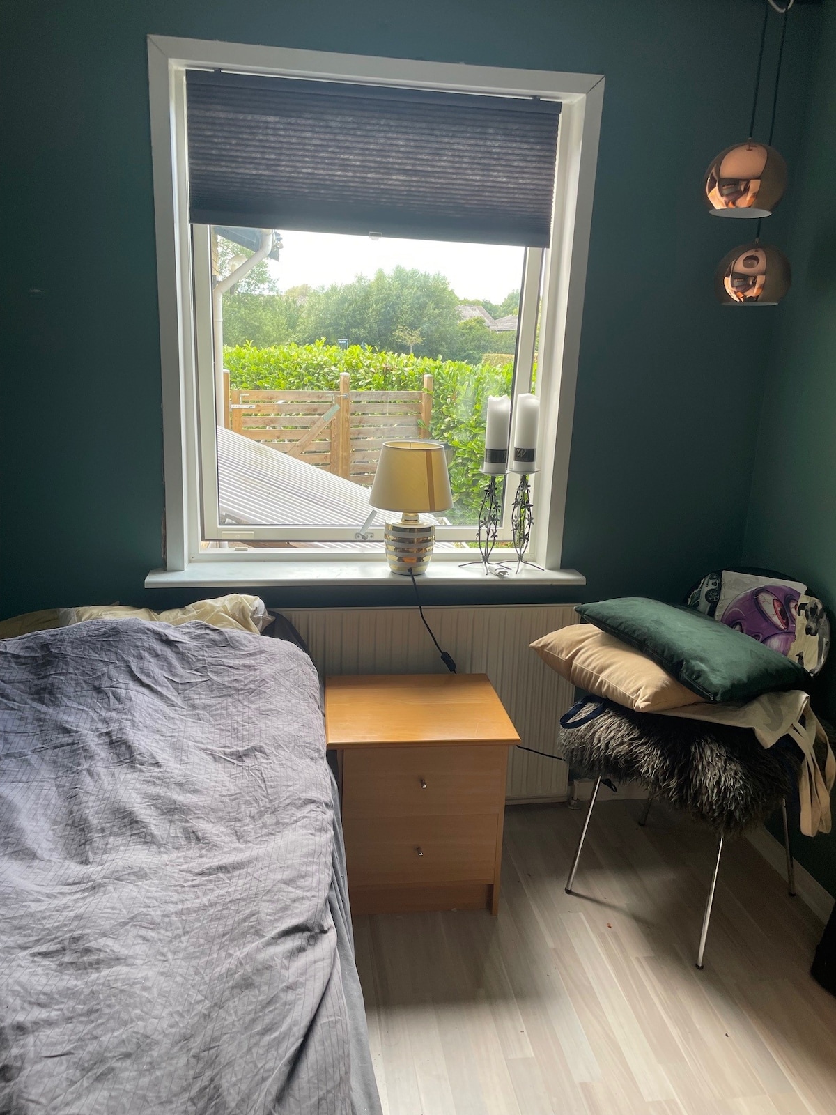 Nyd det simple liv i denne fredelige og centralt beliggende bolig. Du har tilgang til bad og køkken. Foretrukken lejer er her i længere tid af gangen i hverdagene. Der er stor have - og vær opmærksom på at du også vil møde min hund.