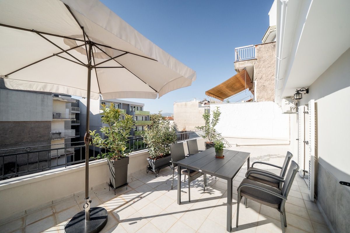 Όμορφο και φωτεινό ρετιρέ στον 3ο όροφο, στο κέντρο της Κοζάνης με μεγάλη βεράντα. Διαθέτει σαλόνι, δωμάτιο με διπλό κρεβάτι και αποθηκευτικό χώρο, μια μικρή πλήρως λειτουργική κουζίνα και ένα μικρό αλλά πρακτικό μπάνιο, με ντους και όλα τα απαραίτητα είδη υγιεινής. Το κατάλυμα βρίσκεται σε εξαιρετική τοποθεσία, κοντά σε καφέ, εστιατόρια, σούπερ μάρκετ και όλα τα σημεία ενδιαφέροντος της πόλης.