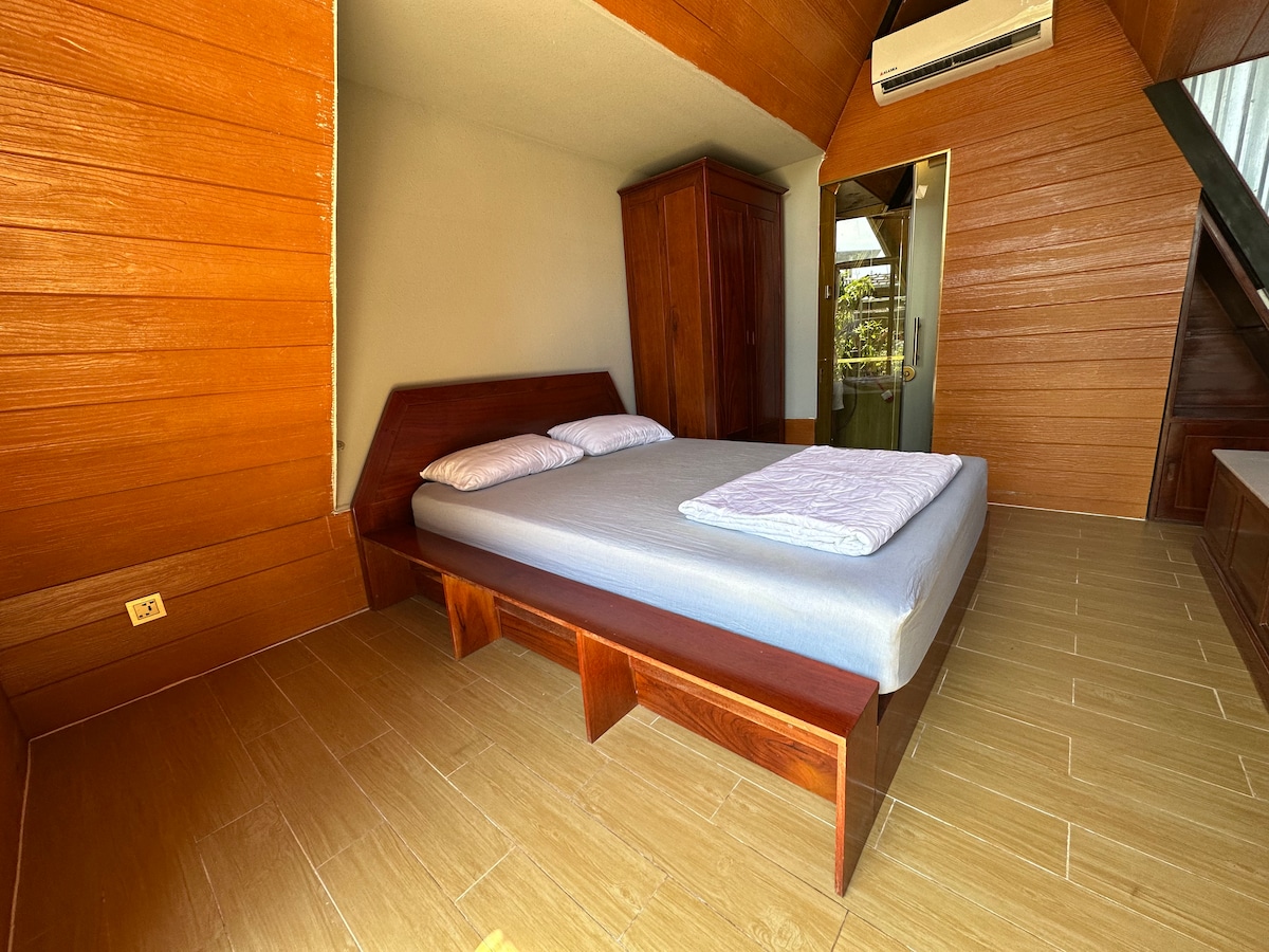 Bungalow | 1 chambre + baignoire extérieure Confortable et charmant, ce petit bungalow de style khmer offre aux couples une retraite paisible. Il dispose d'une chambre avec une baignoire extérieure privée, d'un salon confortable, d'une salle de bain privée, d'une cuisine entièrement équipée et d'un balcon spacieux. Niché dans un village local, c'est le mélange parfait de confort et de vie cambodgienne authentique.