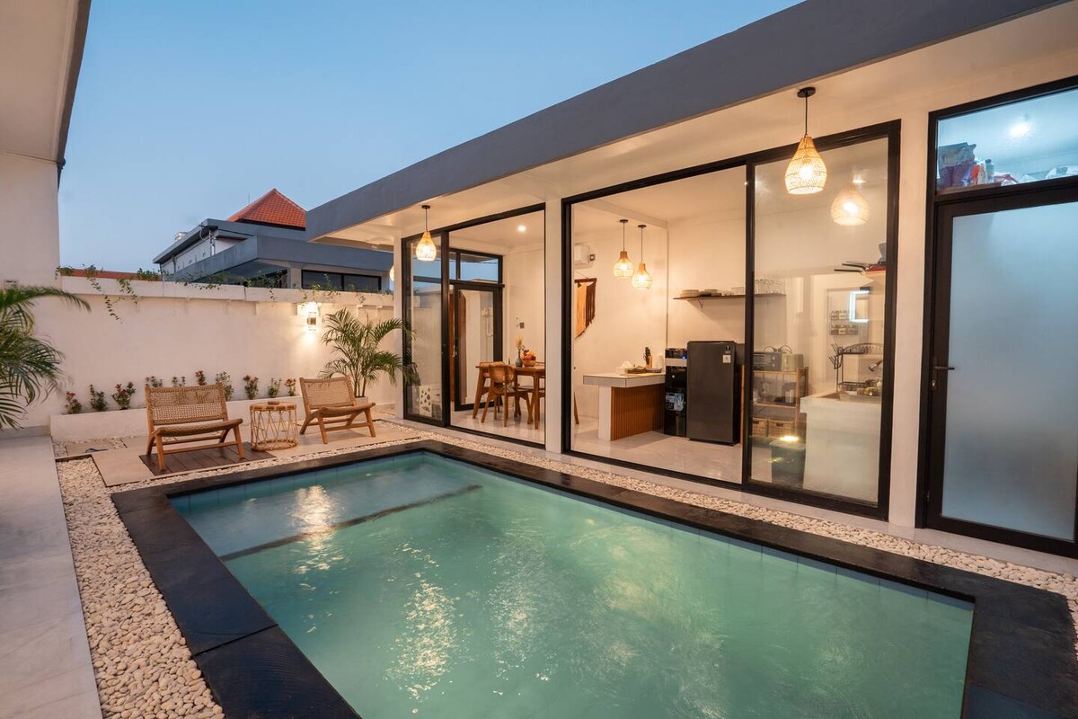 Brand-new villa in central Canggu: • 2 stylish air-conditioned bedrooms with serene jungle views • En-suite bathrooms with bathtubs, slippers & hairdryers • Open-plan living area with modern minimalist design • Fully equipped kitchen for cooking or hosting • Spacious private pool & BBQ-ready terrace • 300 Mbps Wi-Fi — perfect for work • Daily cleaning with towels & linens • PS5 & Netflix on request • Baby cot & high chair on request • Concierge for massages, scooter rental, private chef & more