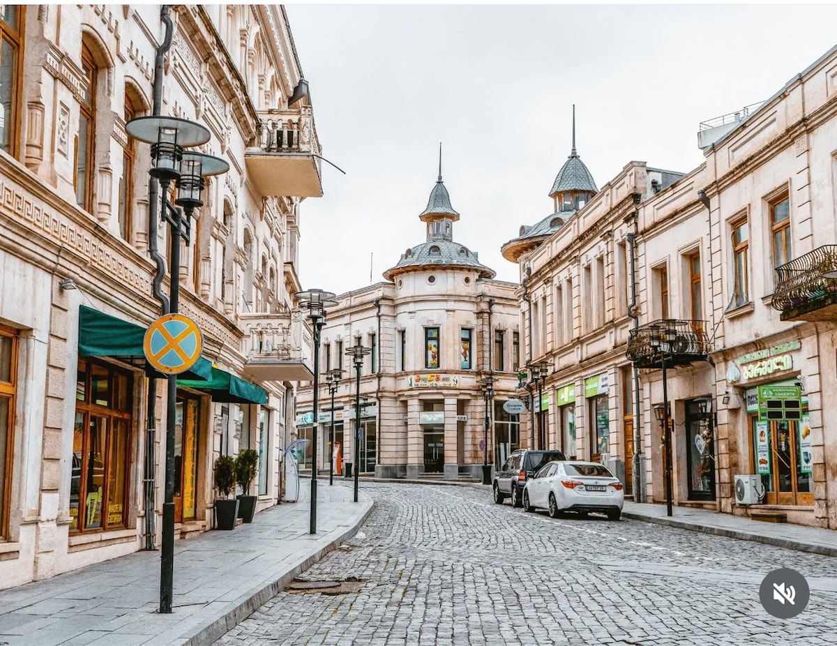Bienvenue dans notre appartement. Il est niché sur une route sans circulation dans une cour confortable. L'appartement est à seulement 1-2 min à pied du centre-ville, des commerces, des restaurants, des parcs et du centre touristique. C'est le quartier historique de la ville, à seulement 150 m de la fontaine de Colchis. Pour mes voyageurs, je peux organiser la location de voiture, je peux également proposer quelques trajets en voiture et je peux venir vous chercher à l'aéroport à tout moment.