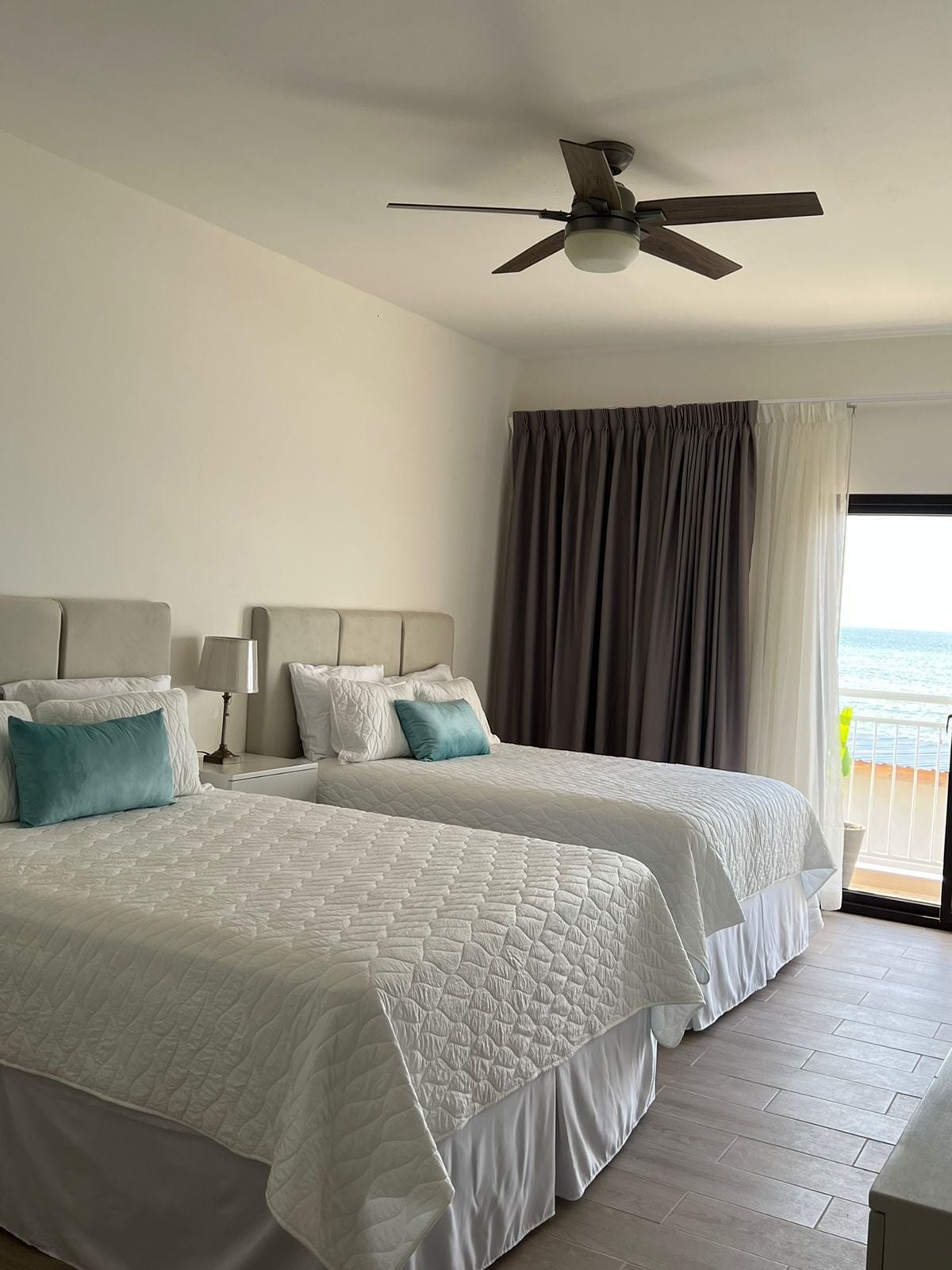 Cet endroit élégant est proche de tout ce qui est essentiel. Dans le cadre du « Paseo de Los Ceibeños », il est entouré d'activités, de restaurants et de bars, de terrains de sport, de baigneurs et de coureurs sur la plage et le parc. Nous sourirons quand nous verrons vos yeux s'agrandir dès que vous entrerez dans cette chambre accessible aux personnes handicapées. La chambre, équipée de lits Sealy premium et de couettes légères et confortables, est très délicate et conviviale. Denisse a fait un excellent travail avec l'endroit et le personnel !